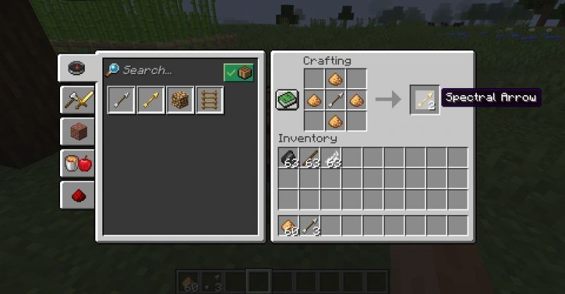 Once players have arrows and glowstone dust on their hands, they can quickly craft up some spectral arrows at a crafting table. Two spectral arrows will be made per four glowstone dust and single arrow used.