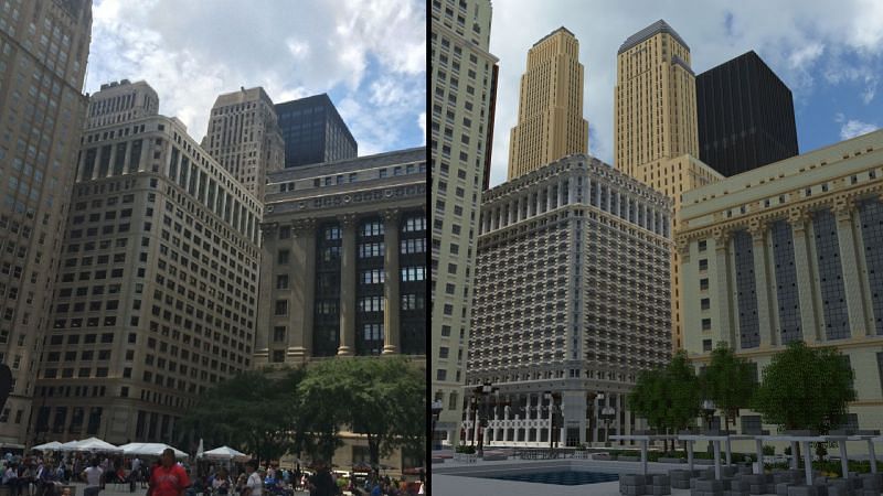 Not only is the build to scale, but it looks as exact as possible in comparison. This build features approximately 8 full city blocks and gives Minecraft players a way to authentically experience Chicago. Landmarks of interest include the Board of Trade building, the Rookery, the Chicago Federal Plaza, and more.