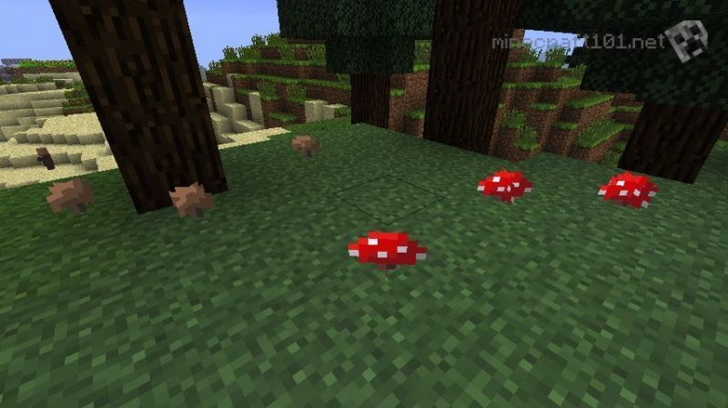 Mushrooms usually generate in poorly lit areas in Minecraft but can be found in well-lit areas as well. Mining a mushroom block will grant the player two mushrooms to place into their inventory.