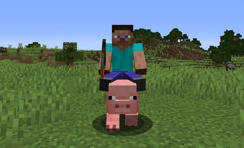 Pigs can be quite fun to ride. These mobs can be easily mounted once a saddle has been placed on them. From there, players will want to craft a fishing rod with a carrot at the end. Equipping this item while sitting on a pig will cause the mob to move in whatever direction the player is facing.
