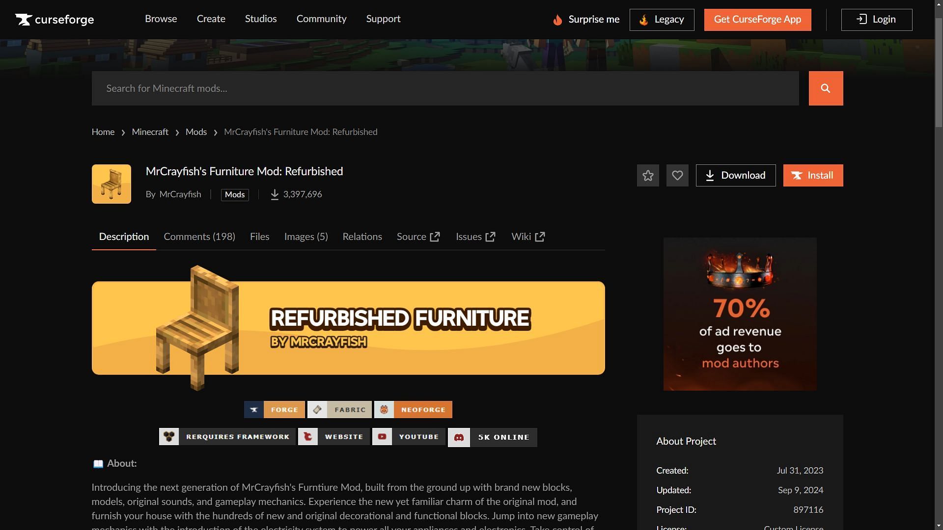 Users can simply head to the CurseForge website and search for furniture mods in order to get them in their game.