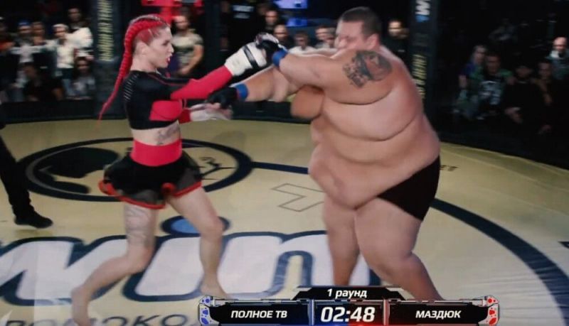 Under the "Our Business" banner in Russia, female bantamweight Darina Madzyuk took on male super heavyweight Grigory Chistyakov in November 2020.