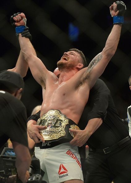 By 2014 it seemed like Bisping’s career was on the wane, as he spent a year on the shelf due to a persistent eye injury and then lost to Tim Kennedy and Luke Rockhold in one-sided fashion. But true to character, he kept plugging away, picked up a couple more wins and found himself facing Anderson Silva in early 2016. An incredibly gutsy showing took him past the Brazilian legend and that appeared to be his career peak.