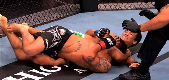 In the UFC, ‘The Korean Zombie’ Chan Sung Jung submitted Leonard Garcia in their 2011 rematch inside the Octagon, via the Twister. A notable difference between the WWE and UFC versions of this submission is the place of its application, with the WWE version taking place standing whilst the UFC version taking place on the ground.