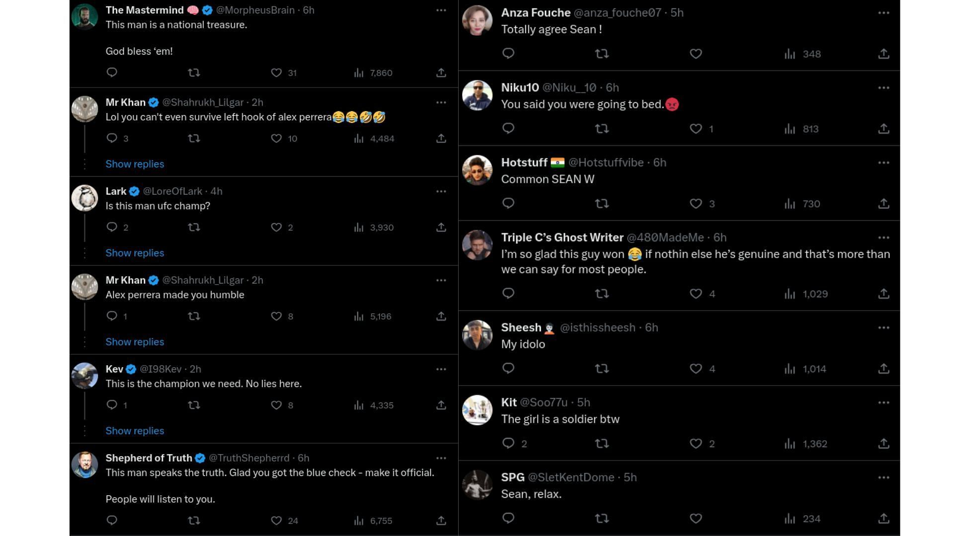 Another fan opted to praise Sean Strickland instead, stating that his point of view makes them proud to have him as a champion: