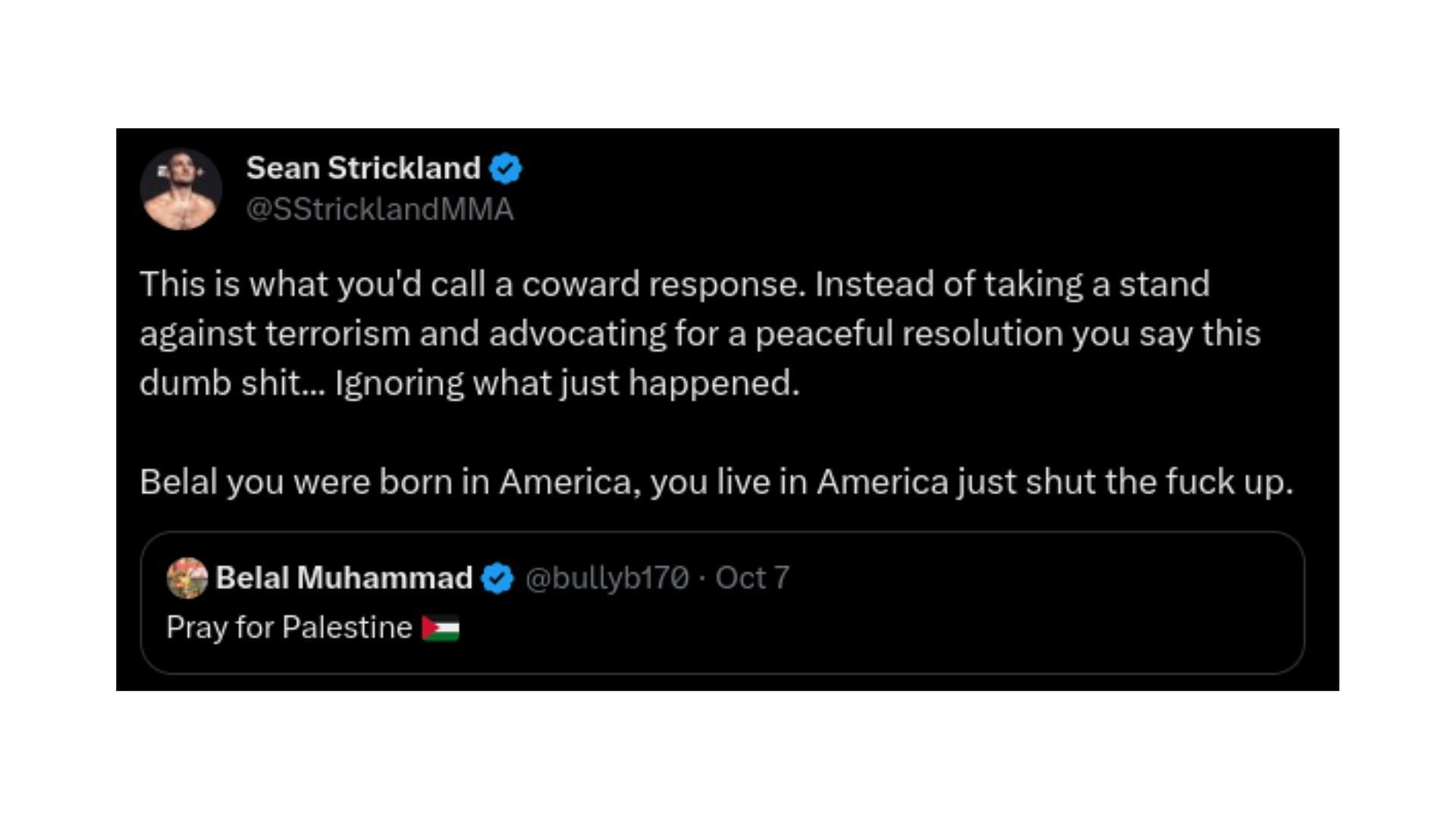 Sean Strickland has called out Belal Muhammad, after the welterweight contender voiced his support for Palestine on social media.