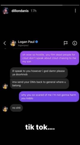 MMA fighter Dillon Danis has leaked a screenshot of direct messages between himself and Logan Paul.