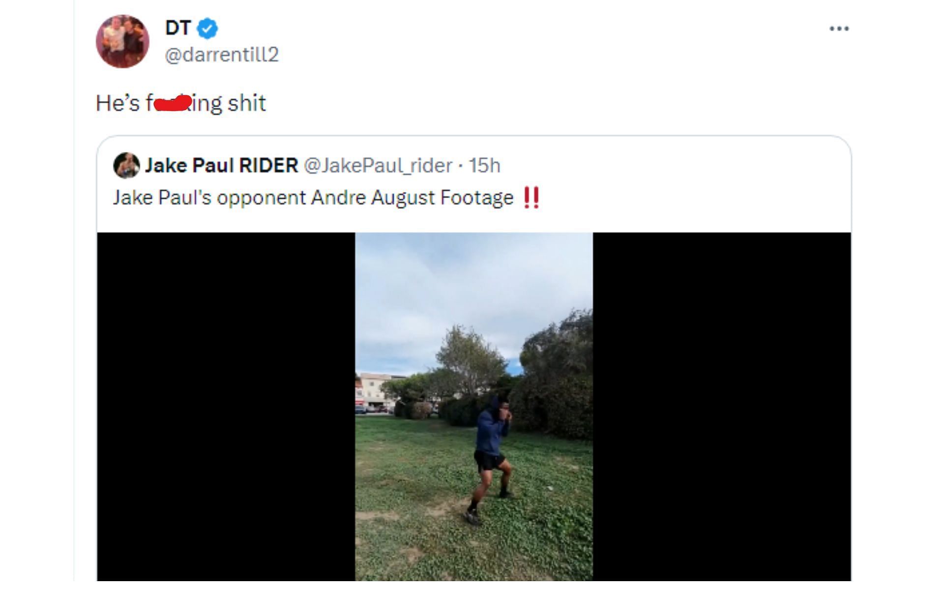 A former UFC star recently weighed in and shared a three-word reaction after training footage of Jake Paul's opponent, Andre August surfaced on social media.