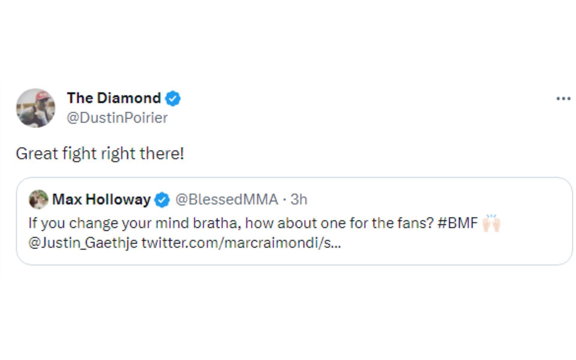 Dustin Poirier, who has fought both fighters twice in the octagon, chimed in and expressed interest in seeing a bout between the two fan-favorites materialize. He quoted the former featherweight champion's tweet and agreed that it would be a can't miss fight, writing: