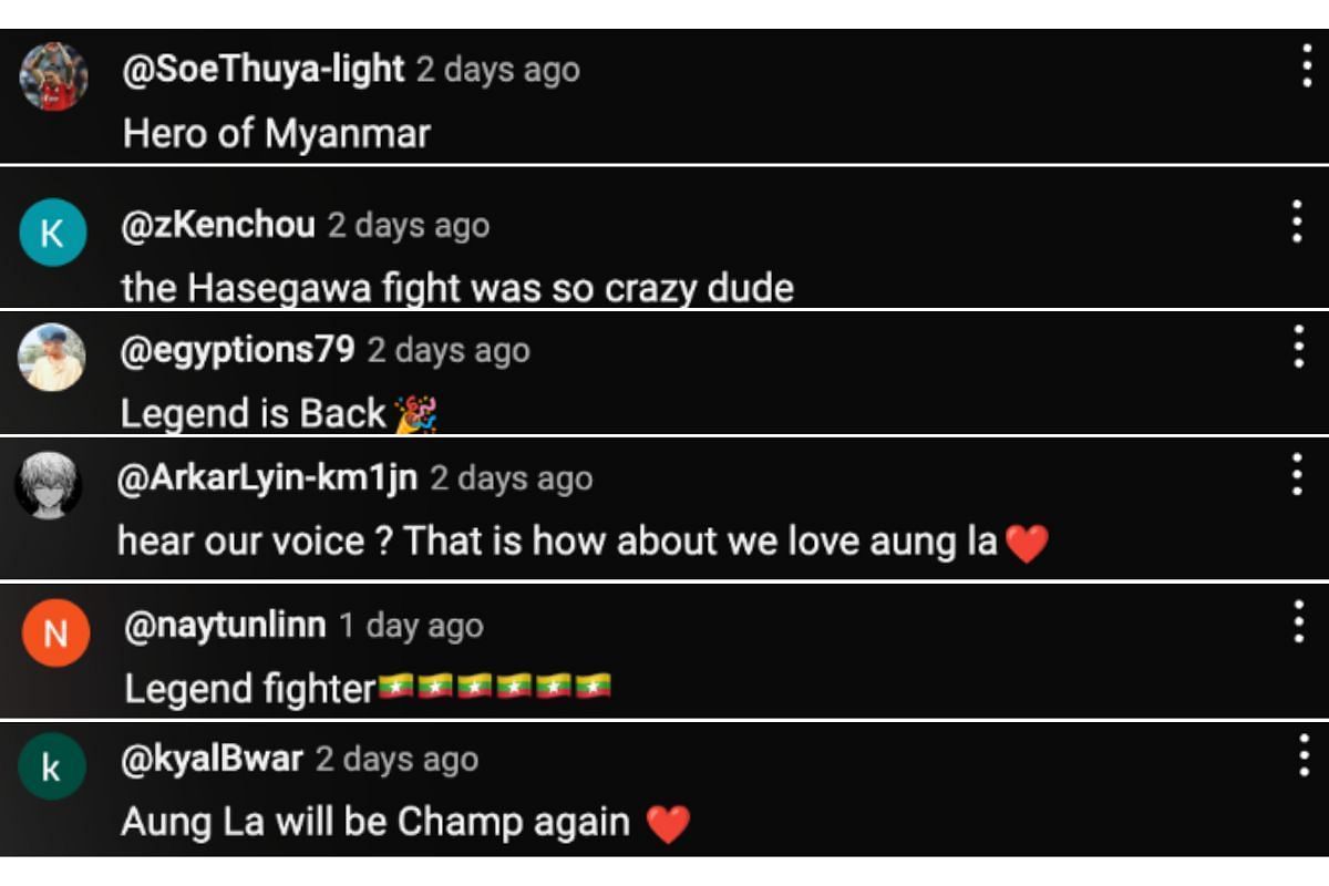 These highlights from Aung La has hyped up the fans, especially users @SoeThuya-light, @zKenchou, @egyptions79, @ArkarLyin-km1jn, @naytunlinn, and @kyalBwar, who sent him positive messages with their comments: