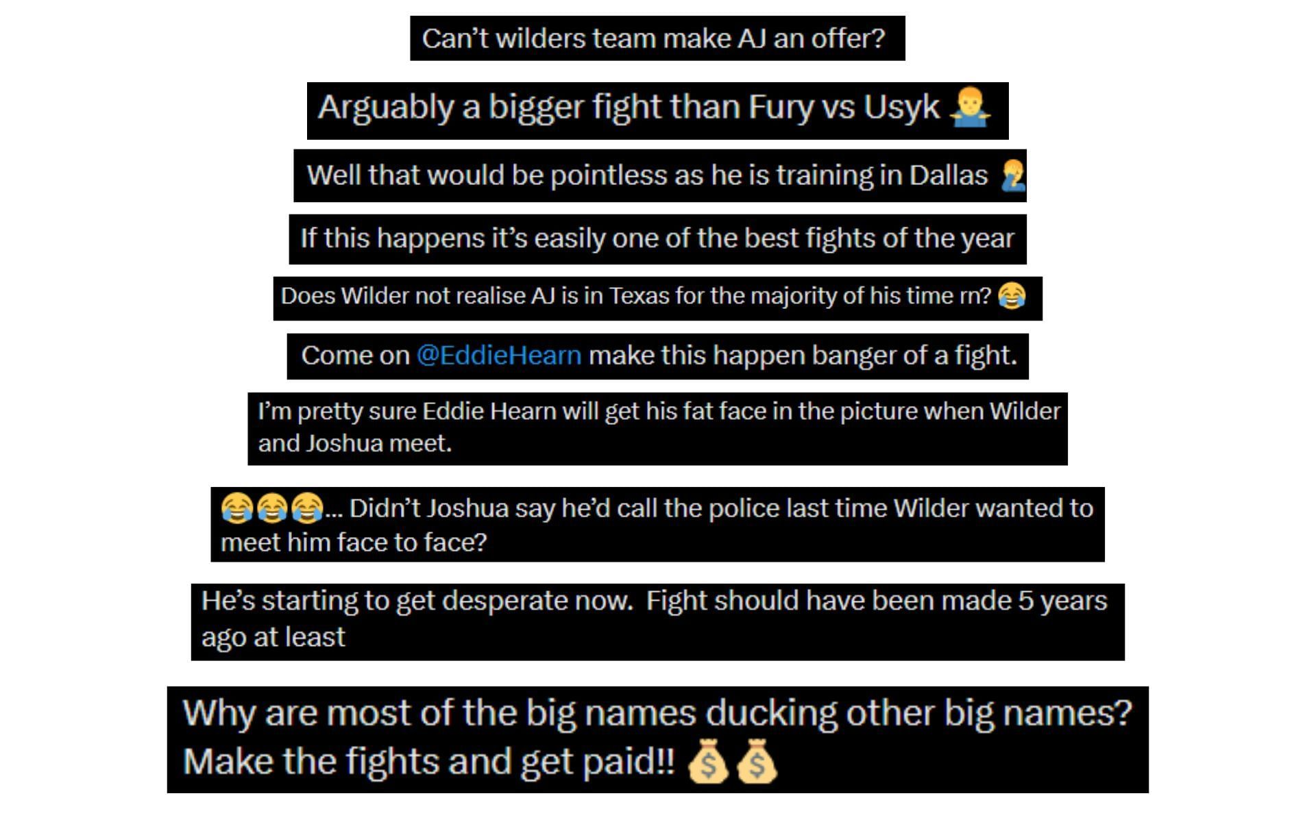 "Does Wilder not realise AJ is in Texas for the majority of his time rn? 😂"