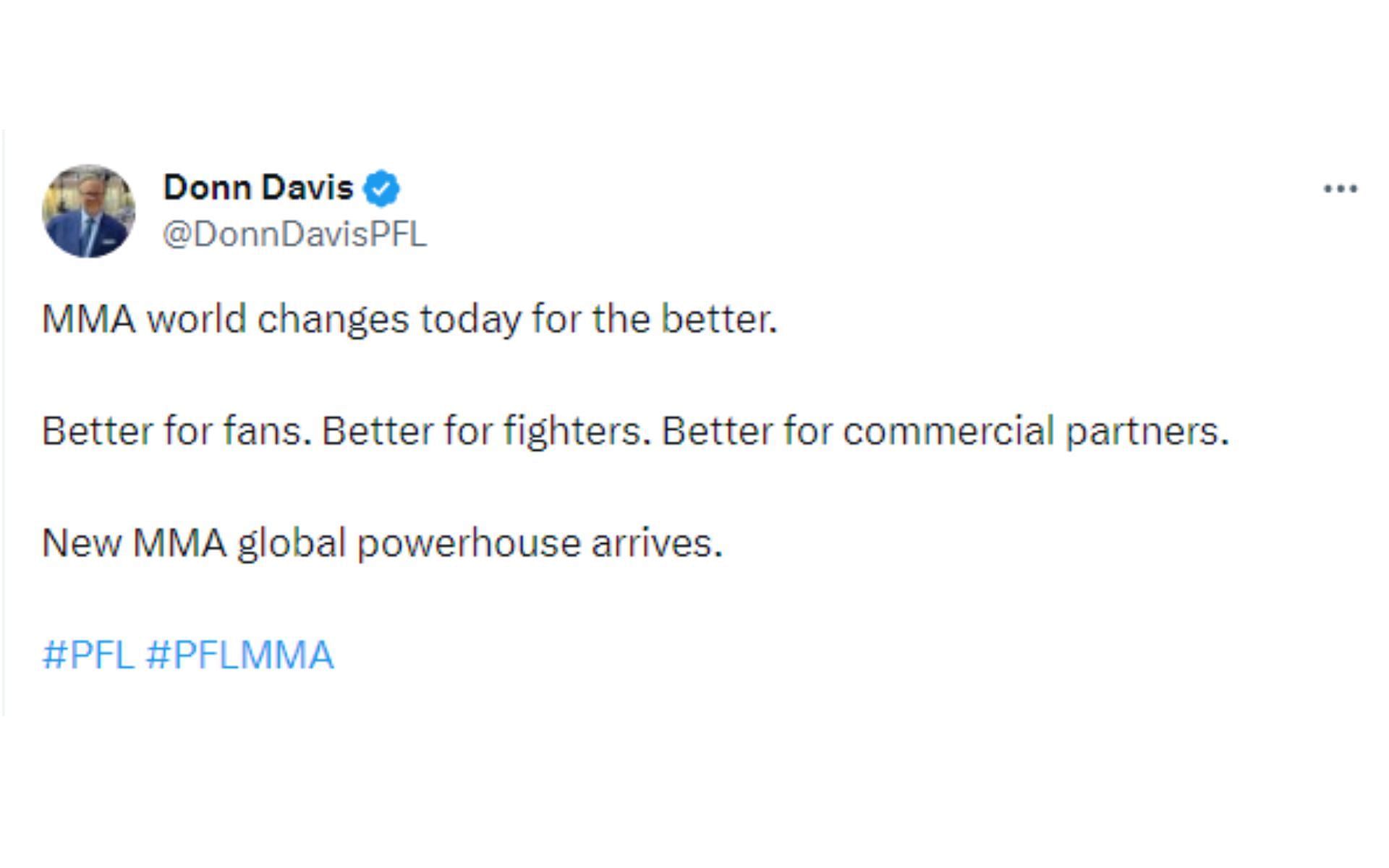 "MMA world changes today for the better...Better for fans. Better for fighters. Better for commercial partners...New MMA global powerhouse arrives."