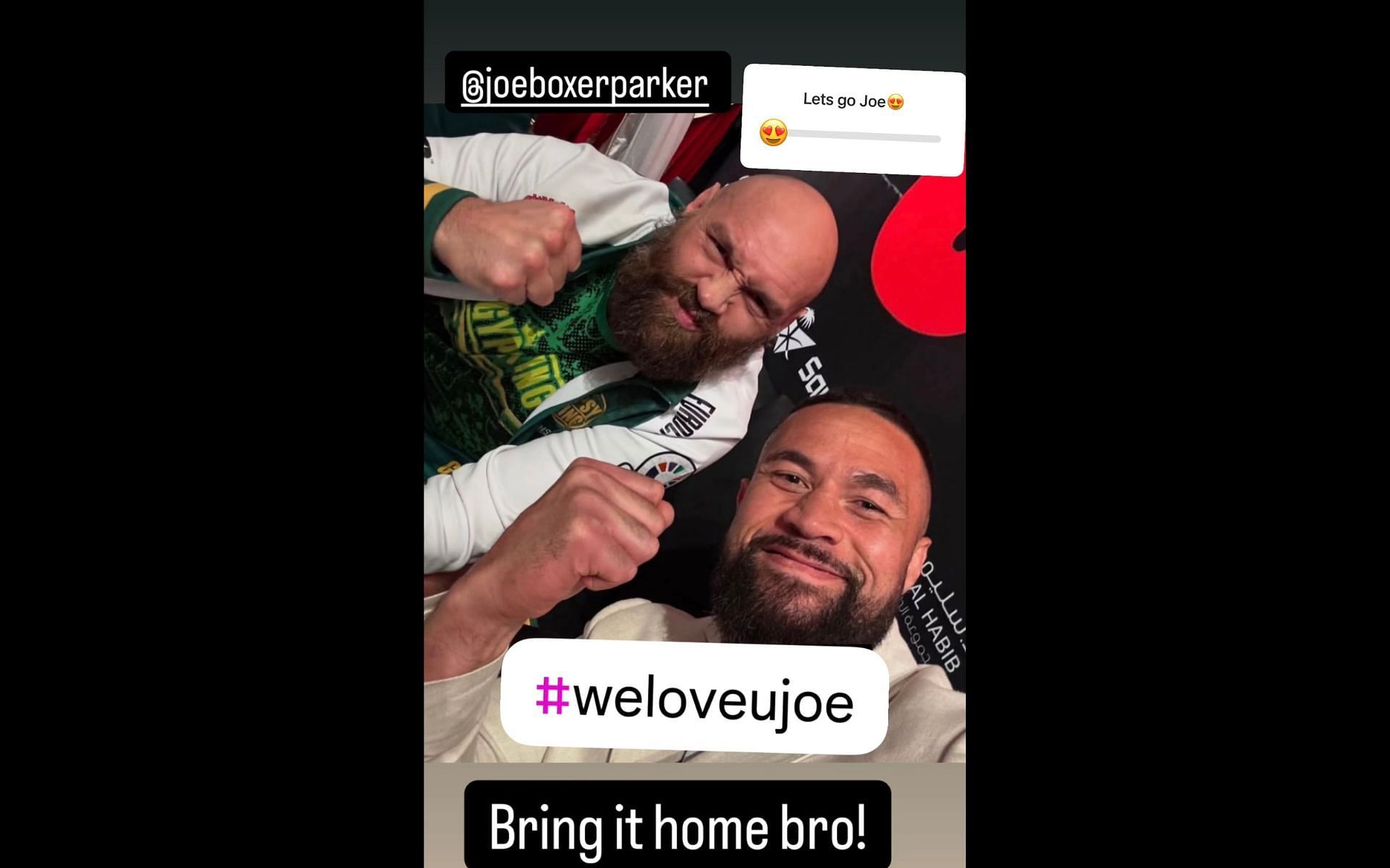 Fury and Parker share a bond, having trained together for fights, and both have fought through depression. Fury posted a photo of himself and Parker and wrote a message: