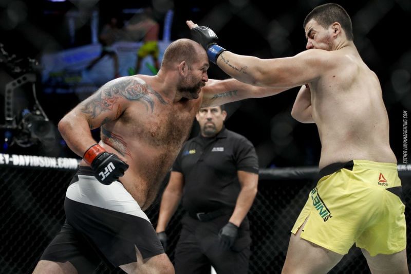 His fights against Jared Rosholt, Marcin Tybura, Alexander Volkov and Daniel Omielanczuk all stunk, and given that at least half of those fighters have shown themselves capable of entertaining fights, it seems like the common denominator is always Johnson, whose favourite gameplan of pressing his opponent into the cage and working dirty boxing is simply never entertaining. Last night’s terrible fight with Golm was like the prototype Timothy Johnson fight and it was awful.
