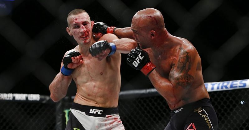 Thomas Almeida beat Brad Pickett after withstanding some vicious early blows from the veteran. However, the youngster withstood the early onslaught and landed a brilliant flying knee to knock Pickett out.