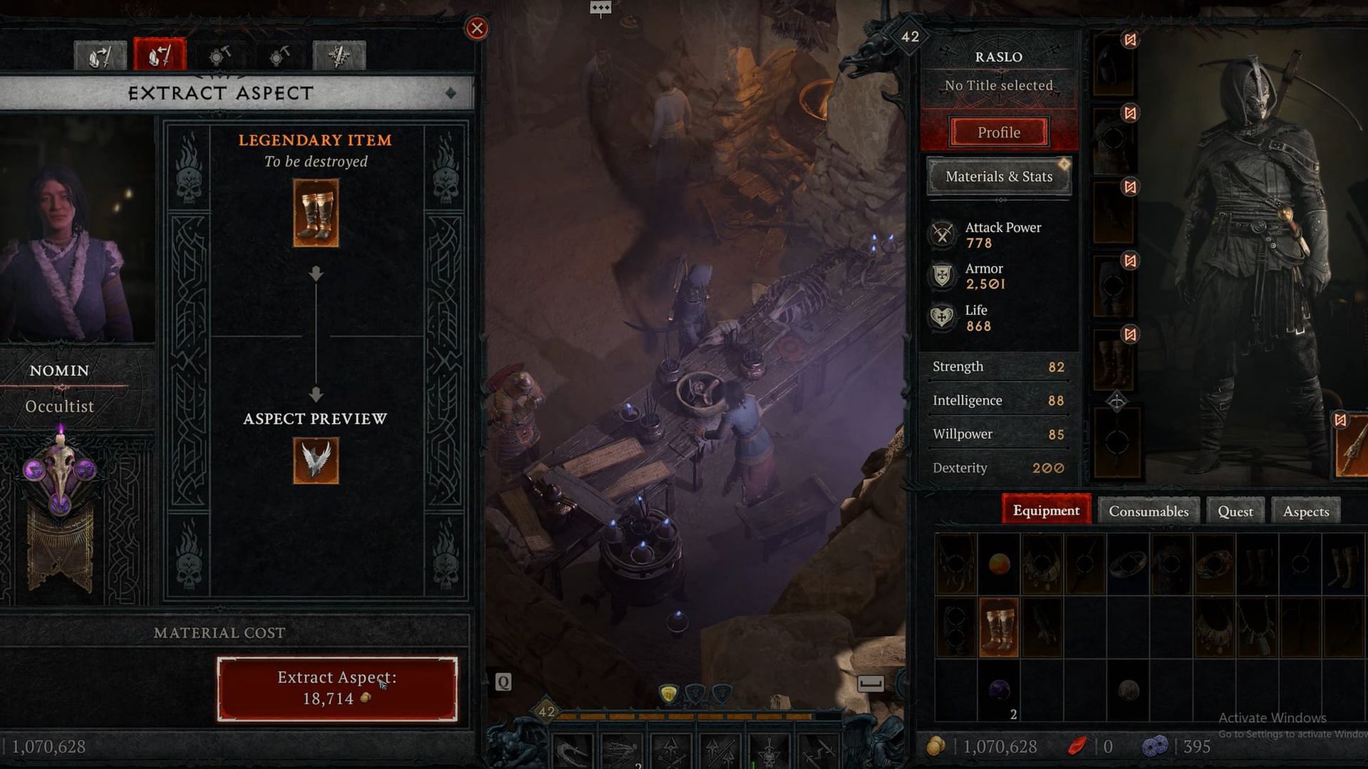 The Umbrous Aspect needs to be extracted from a legendary item in the same way by going to the Occultist in Diablo 4. It is a defensive Aspect that can be used with only Rogue class characters. You may use it with your helmet, chest armor, pats, amulet, and shield. Using this Aspect with your amulet will increase its power by 50%.