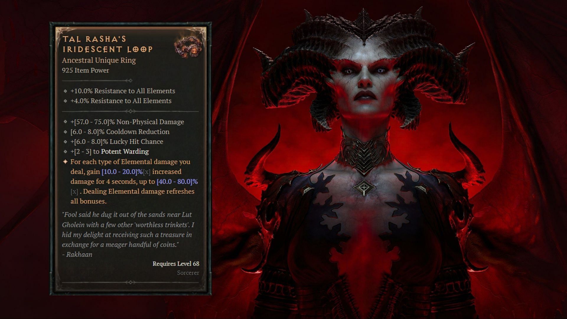 I can’t think of a single Sorcerer build in Diablo 4 right now that doesn’t take advantage of Tal’rasha’s Iridescent Loop as a build-defining item. Its ability to increase your damage based on how many Elemental types you use is pretty incredible, and cannot be underestimated.