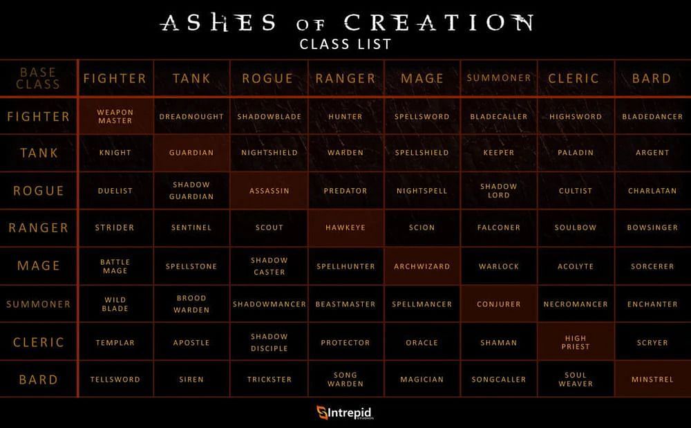 The core of Ashes of Creation's class system will be players' ability to combine two different specialties. There are going to be eight unique classes at launch, and players will be able to pick two that they wish to combine. These combinations do also include picking two of the same class, so you won't feel the need to mix and match if you don't want to.