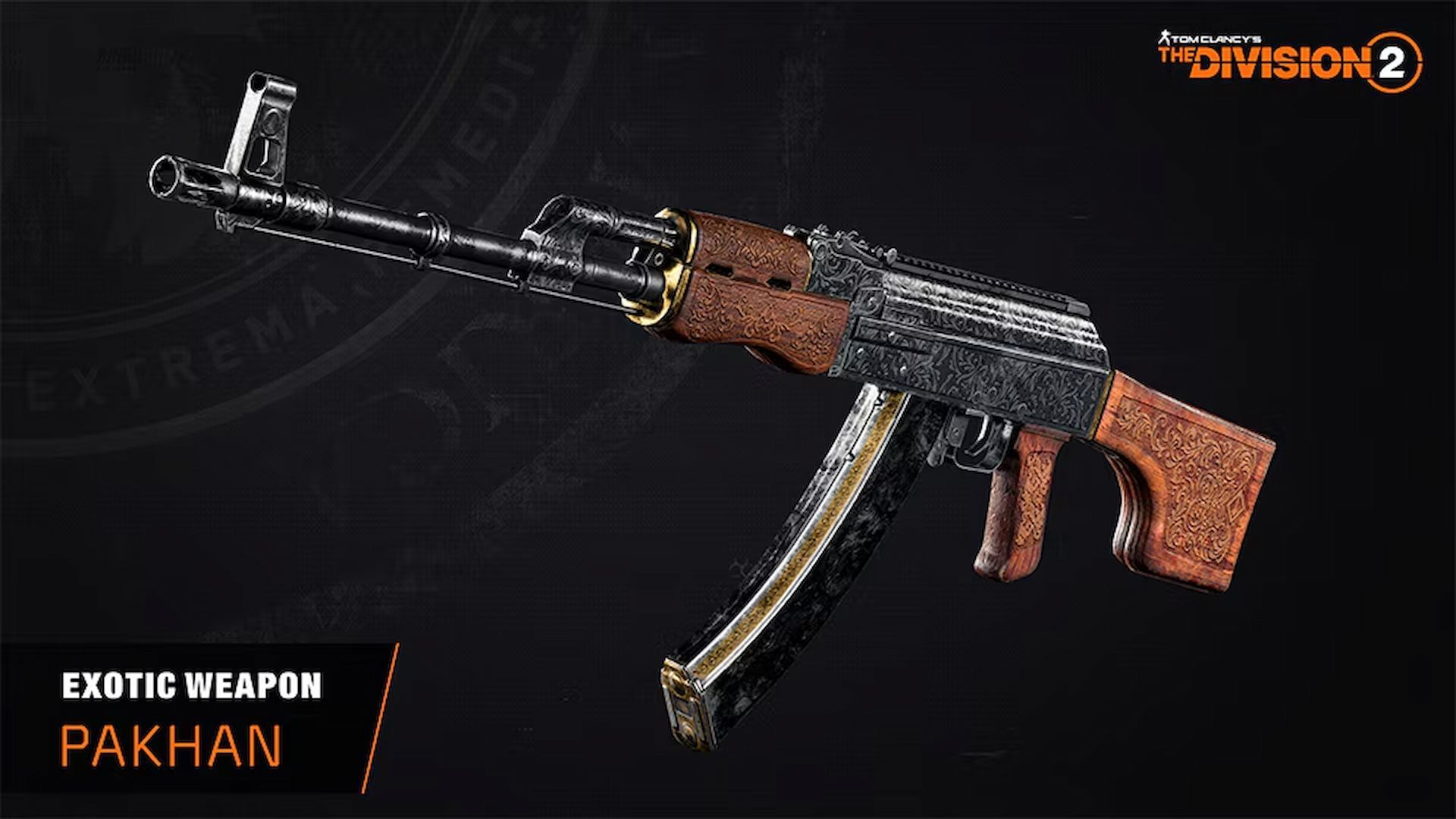 This is a returning Exotic weapon from Tom Clancy's The Division, albeit with a slightly altered Exotic Talent, also named Pakhan, which states: