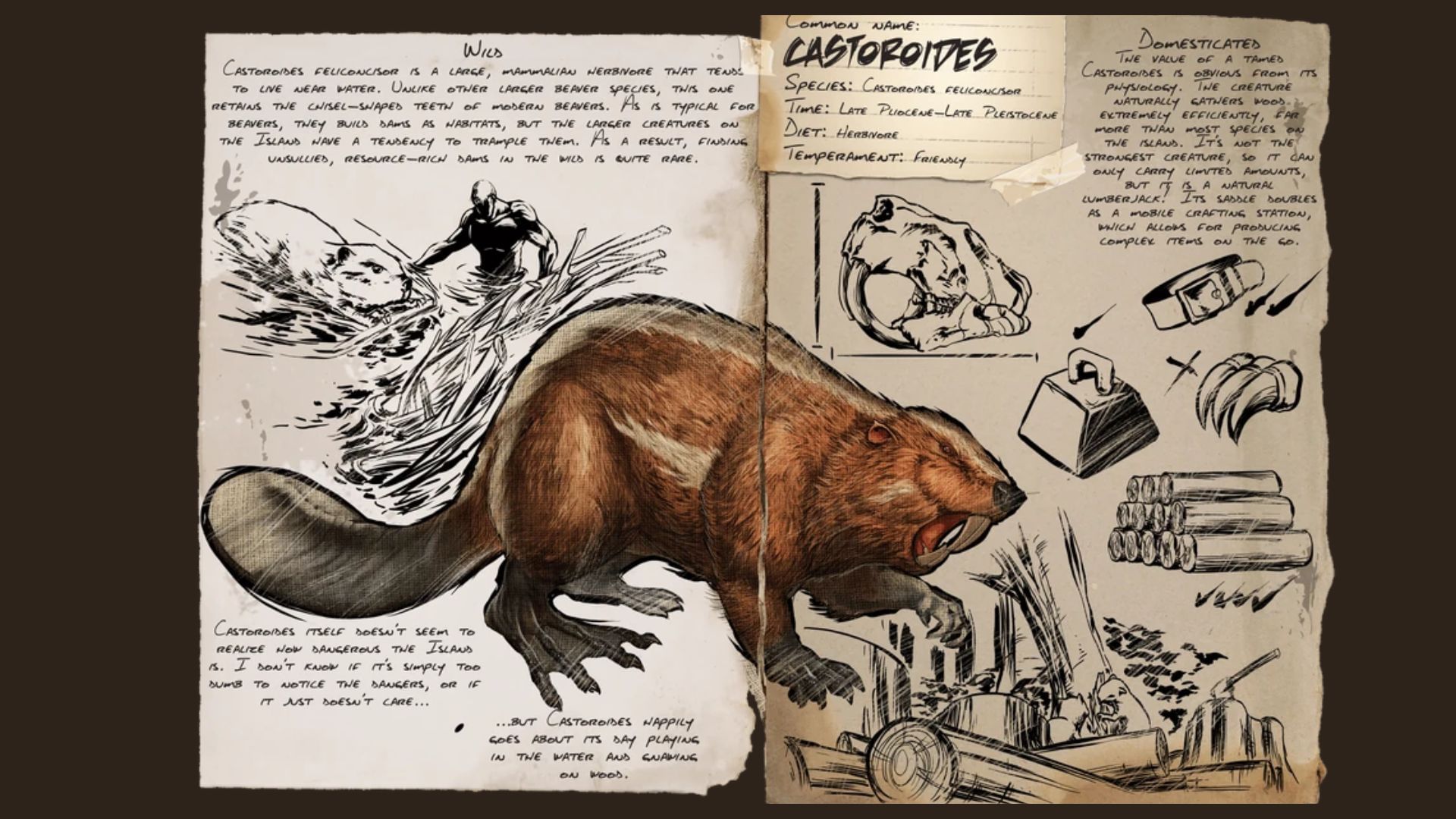 Beaver Dams appear whenever there are Beavers around. But keep in mind that these are not everyday Beaver but the primordial ancestors of Beavers named Castoroides. Castoroides are usually peaceful creatures, but if you loot or destroy their dams, they can become aggressive and come after you.