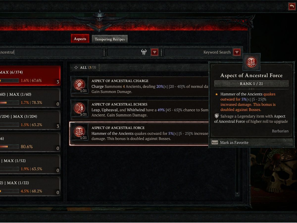 The aforementioned Legendary Aspects are an absolute must-have when it comes to the best leveling build in Diablo 4 Season 7 for Barbarians. There are a few others that are nice to have equipped, such as Retribution, Bul-Kathos, Blood Boiling, Anger Management, Incendiary Fissures, Limitless Rage, and Bear Clan Berserker’s.