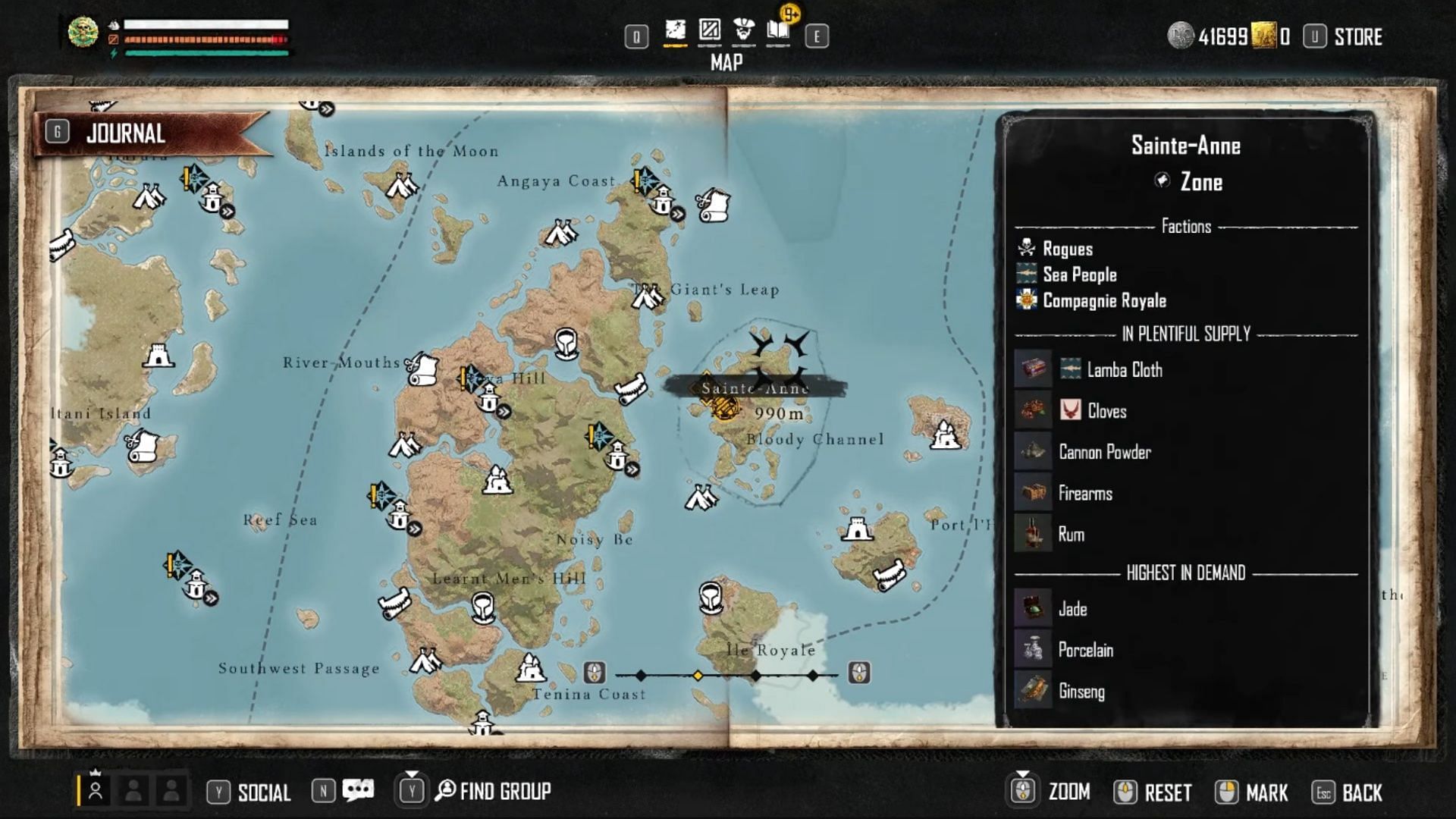 When you pull up your map, zoom in a little to see the various regions on the map. Then, hover your cursor within one of the zones, such as The Giant’s Leap in Skull and Bones.