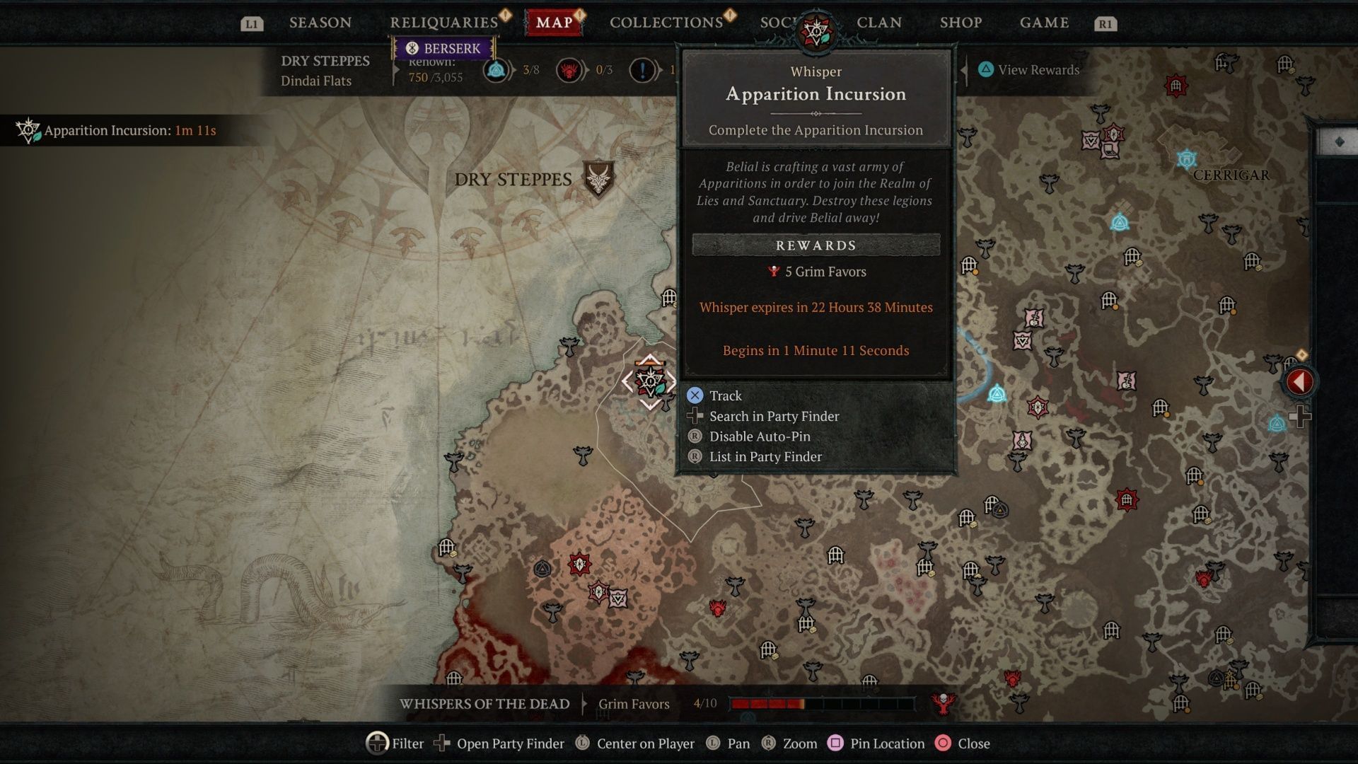 Farming Apparition Incursions is easy enough in Diablo 4, and it does reward Spectral Ash. Simply open your map, see where the current event is, and jump to it. You can also start/join a group of people doing Apparition Incursions, via the Social Tab in-game. If people aren’t doing it at your difficulty of choice, you can always start a group in Diablo 4.