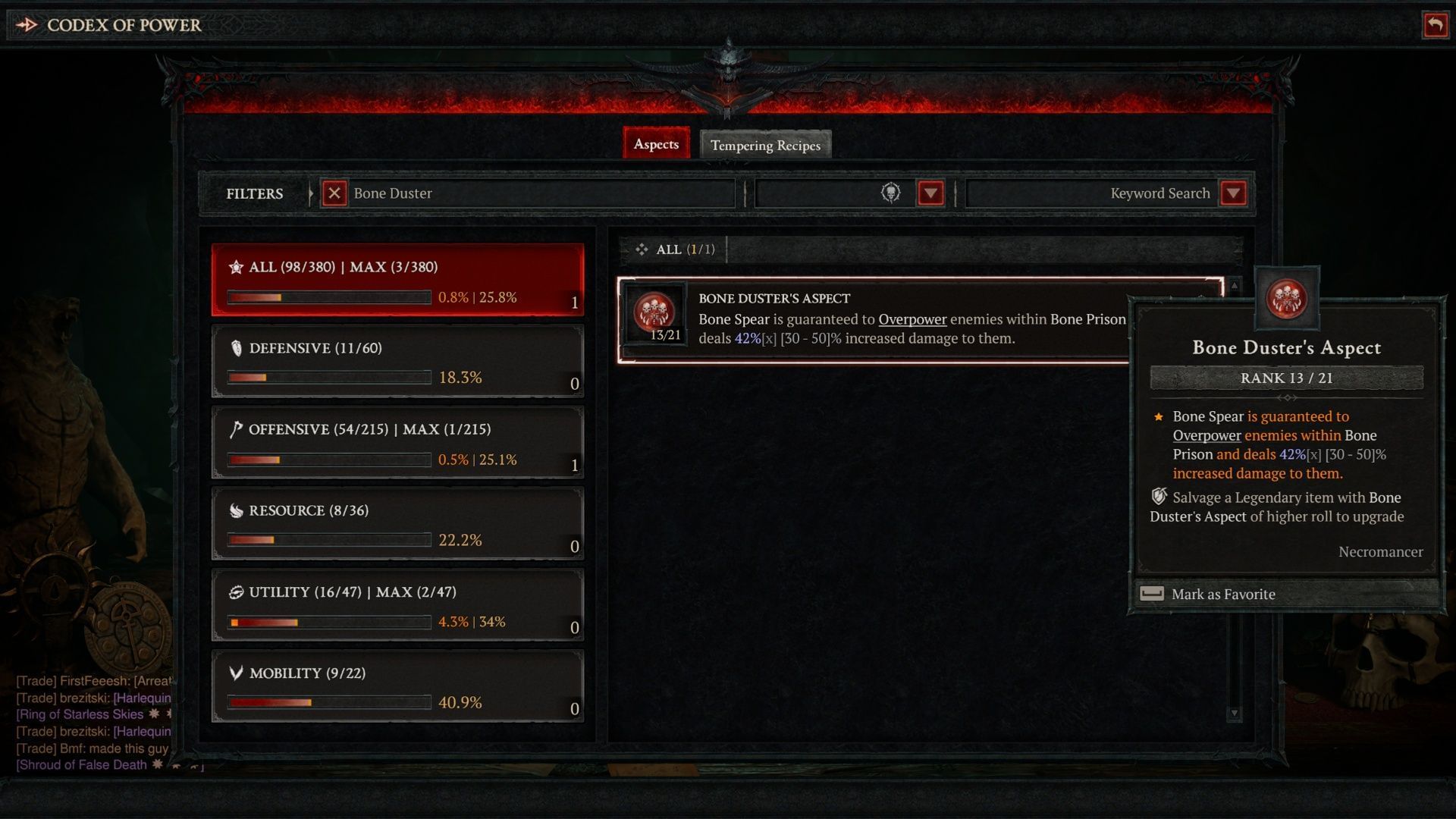 A good example is with Necromancers. Bone Duster’s Aspect, used in Bone Spear Necromancer, makes it so Bone Spear is guaranteed to Overpower enemies within Bone Prison, and also deals 30-50%[x] damage to those targets. Whoever is caught in that Bone Prison is getting shredded.