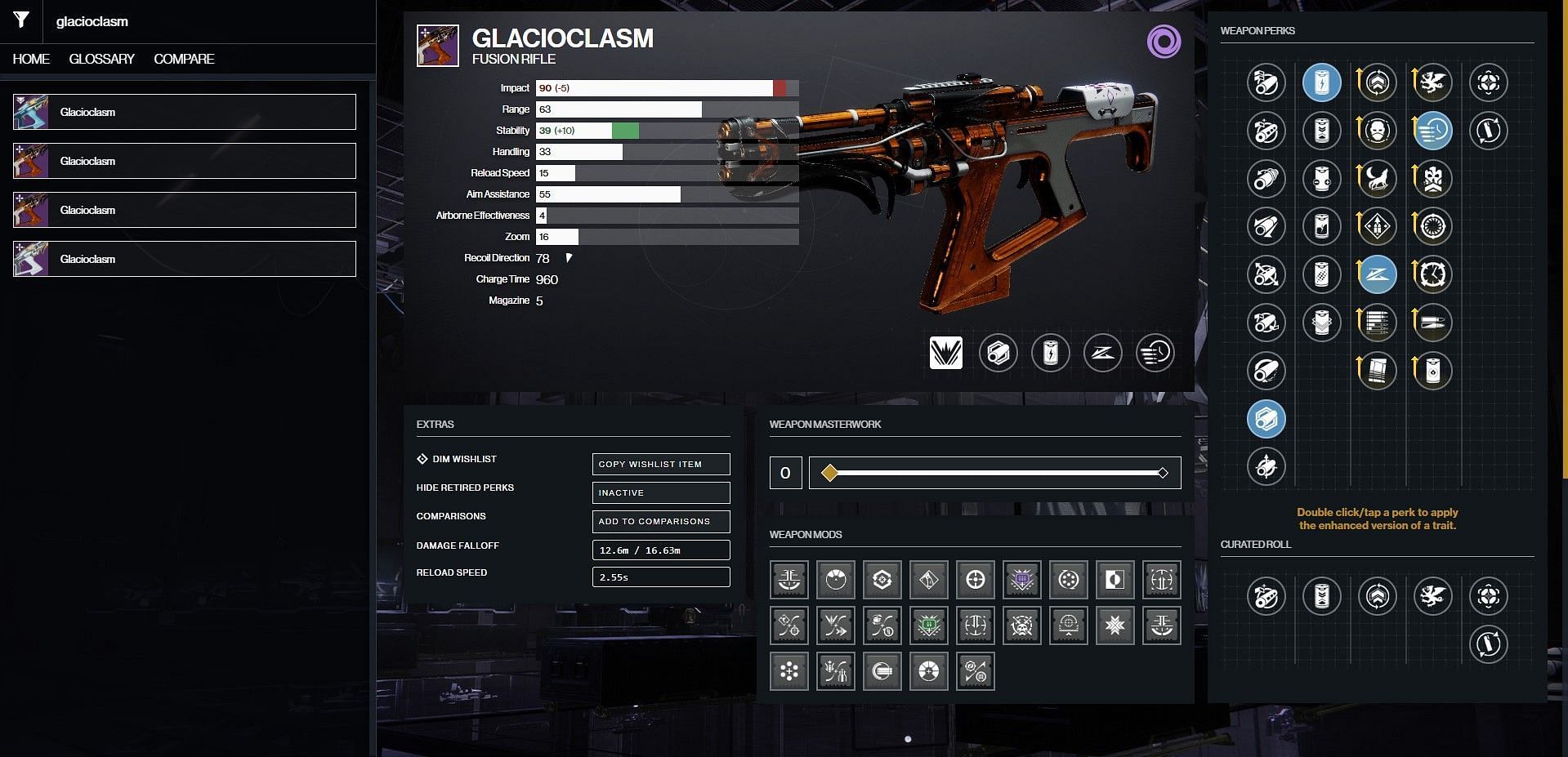 Here is a list of all PvE perks recommended on the Glacioclasm: