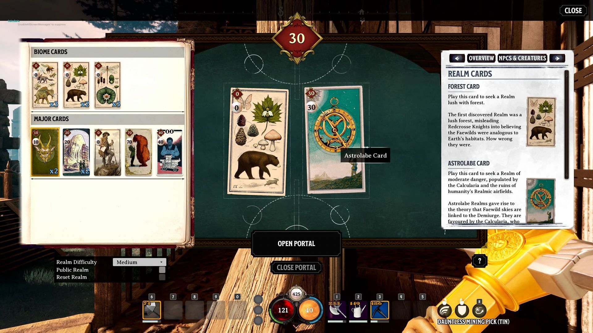 These items are divided into Biome, Major, and Minor cards. These govern the open-world environment, setting and creatures, and quality-of-life adjustments, respectively. Different combinations of these cards will make for unique challenges and experiences, plus they can also spawn different NPCs that provide different quests for you to undertake.