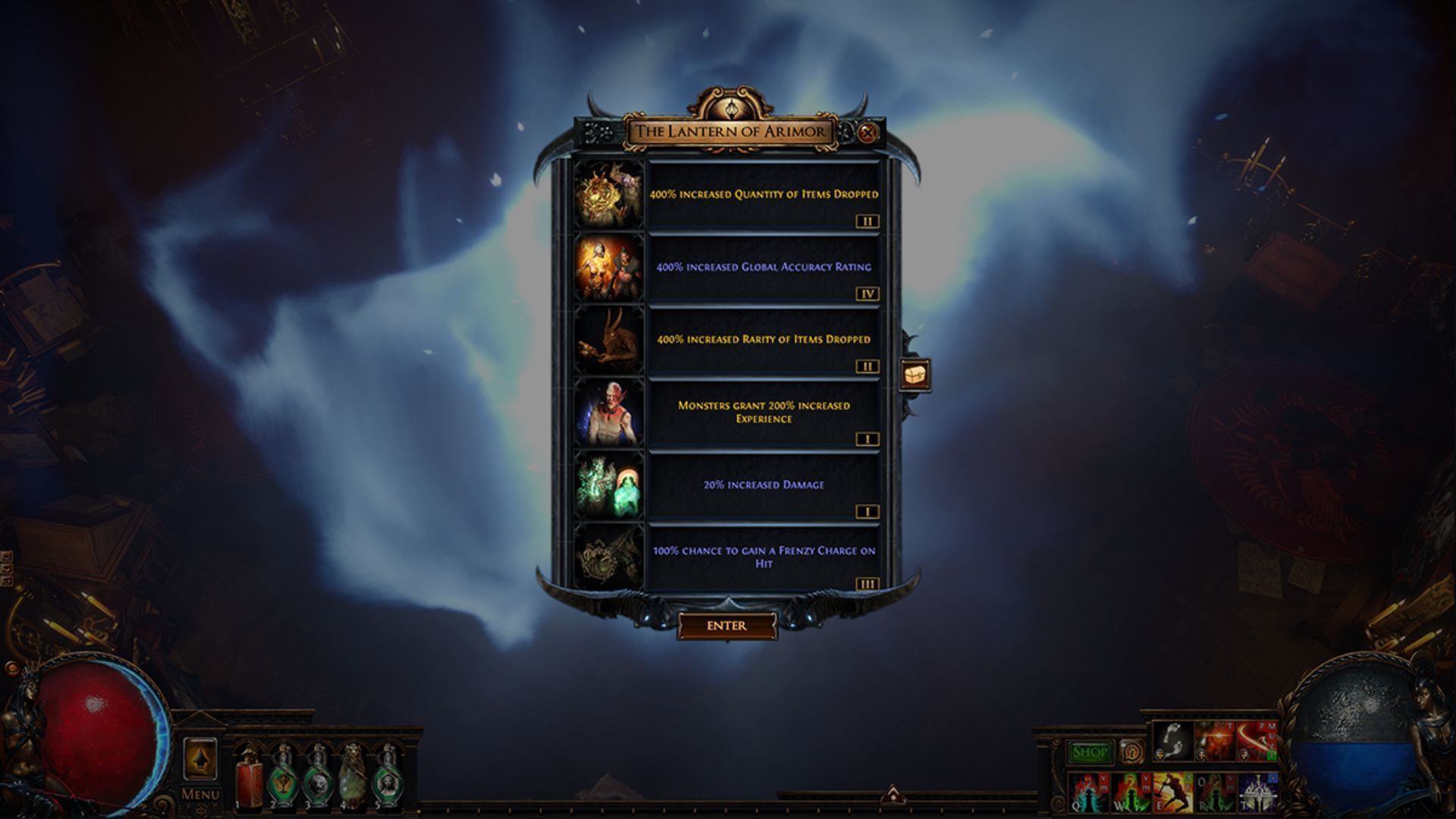Now, in Path of Exile Necropolis League, every map in the game will have a special feature allowing you to use the Lantern on the map device UI to change it permanently. Once you've used the lantern on a map, it can't be removed from the device. During the Necropolis league, you'll find support for it on the Atlas passive tree. This lets you tweak the gameplay and can even affect crafting.
