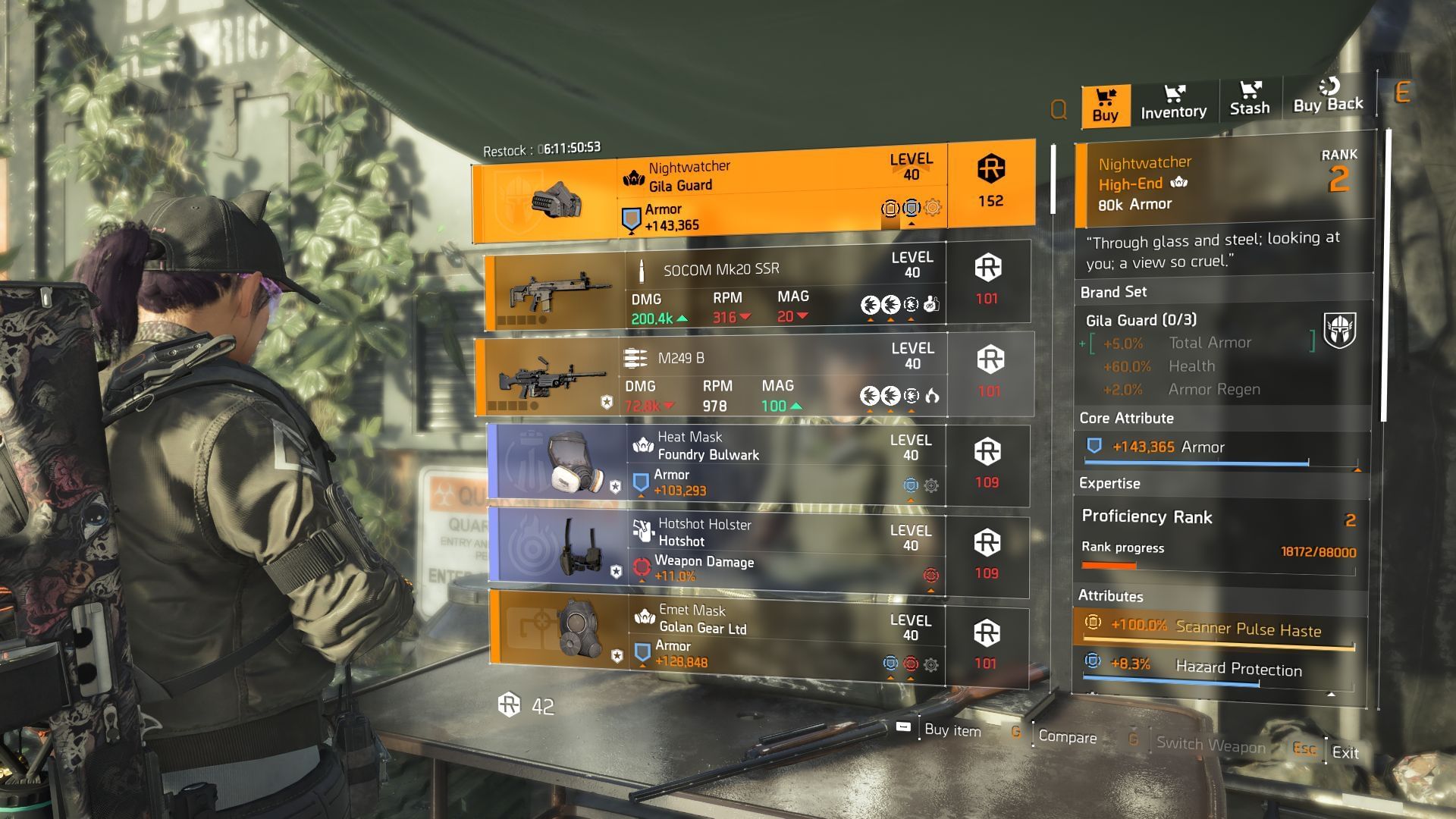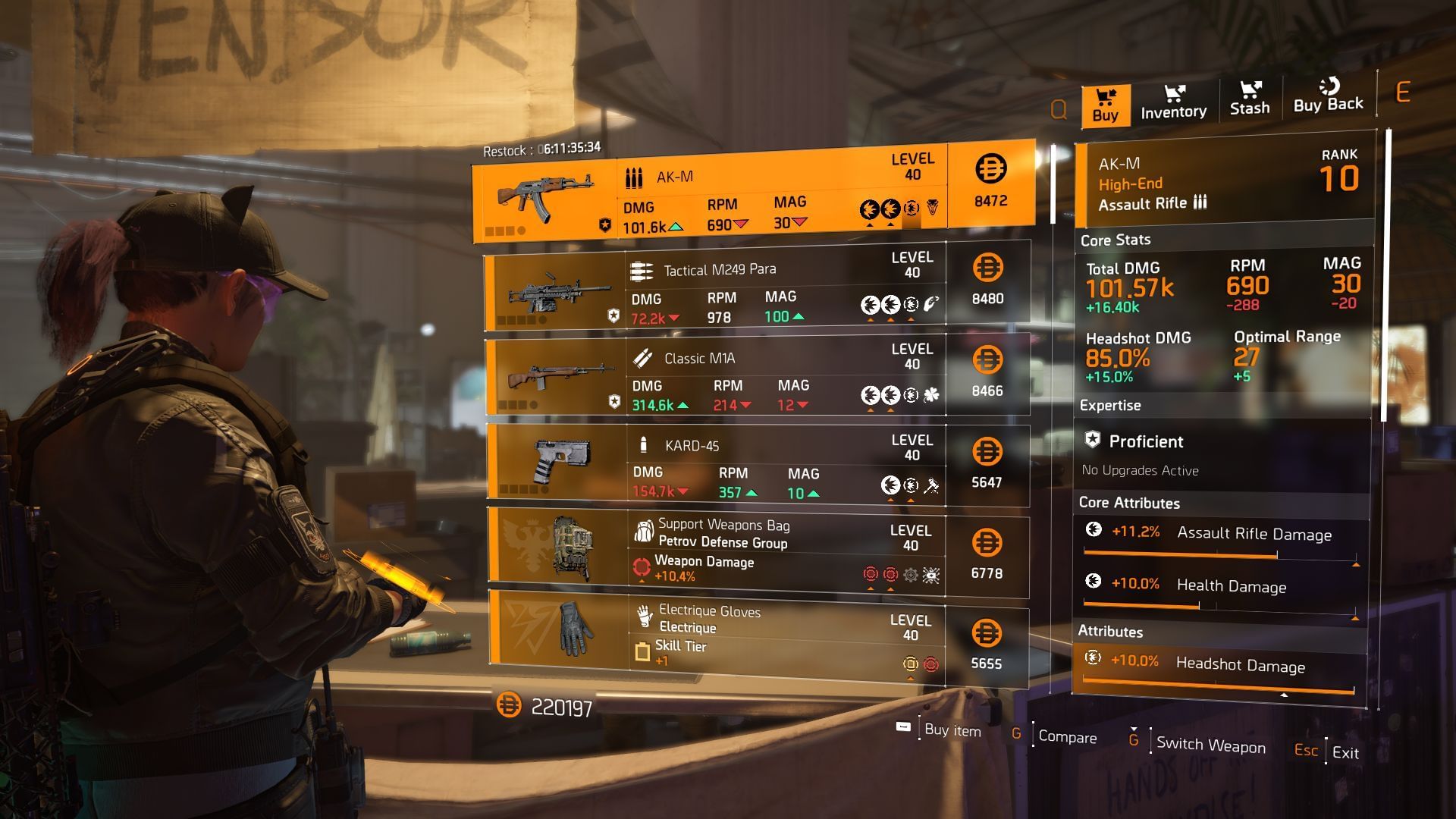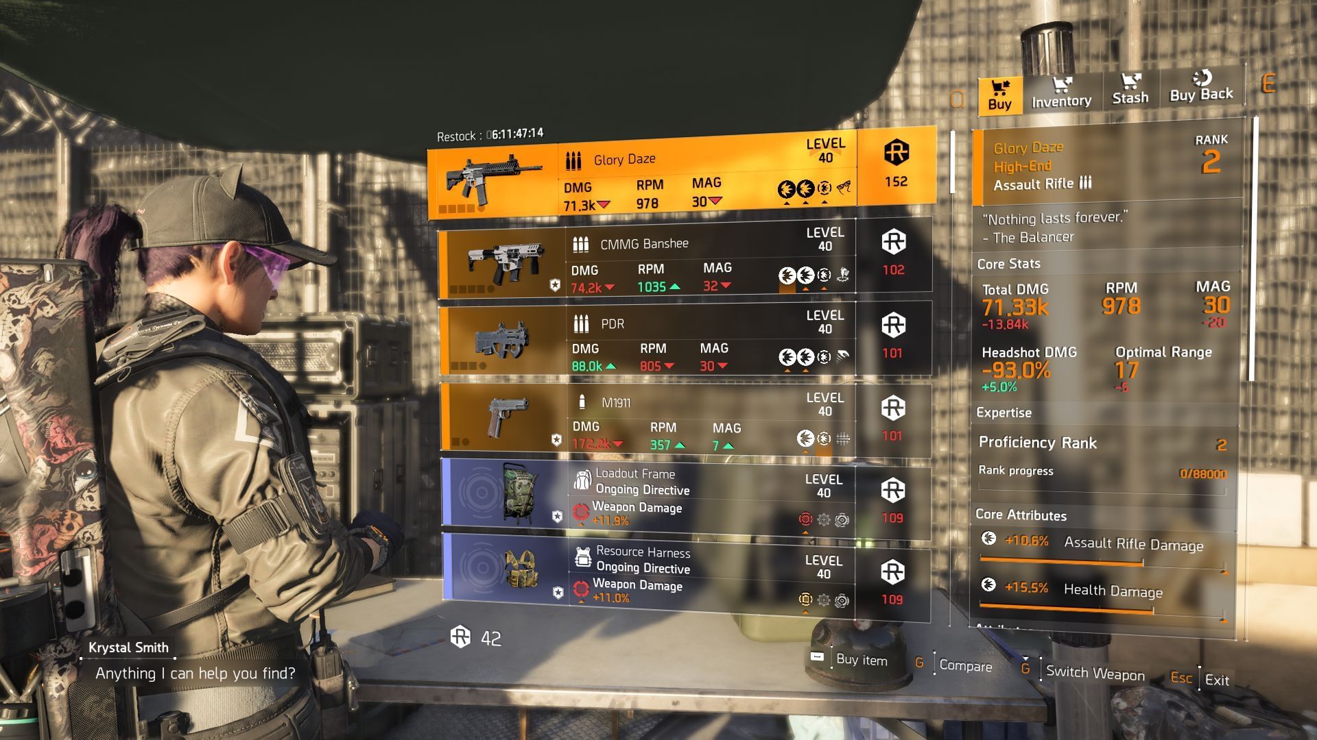 A few items mentioned below can be harder to acquire as in-game drops. Therefore, it is wise to obtain a few copies either for a build or to farm proficiency level from The Division 2 vendors: