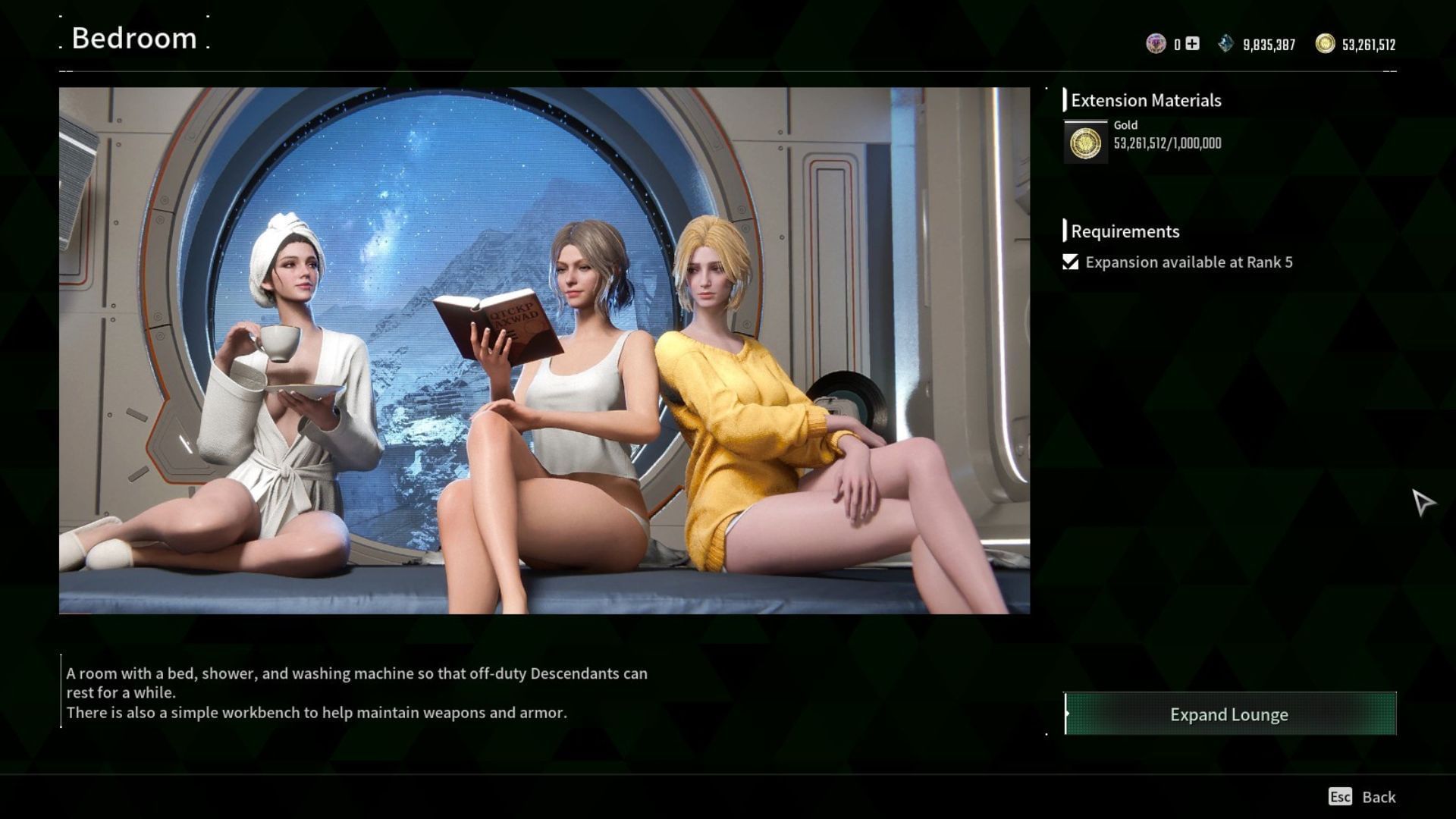 On the left, you’ll find a garage to place the hoverbike on display. There’s an option to customize its look, but apart from that, you don’t get to do much. Within the hall, you can change the Lounge settings by speaking with the Guide.
