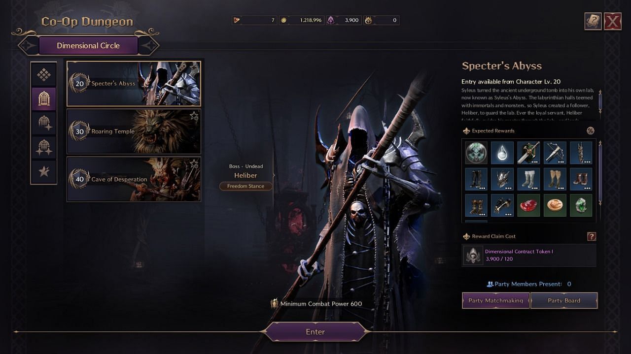 You can gain access to the Throne and Liberty Specter's Abyss Dungeon Boss Heliber by reaching level 20 and having a minimum combat power of at least 600. You can teleport to the Specter's Abyss Dungeon using the Dimensional Circle.