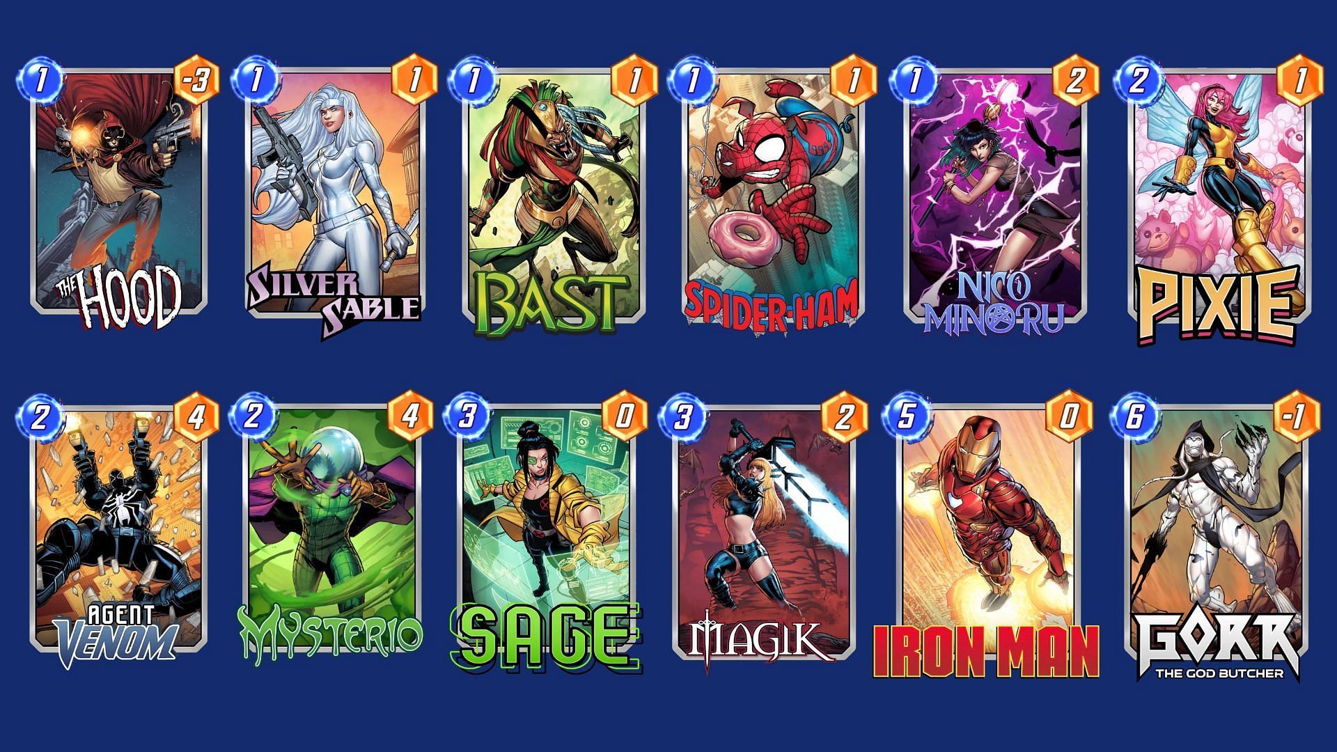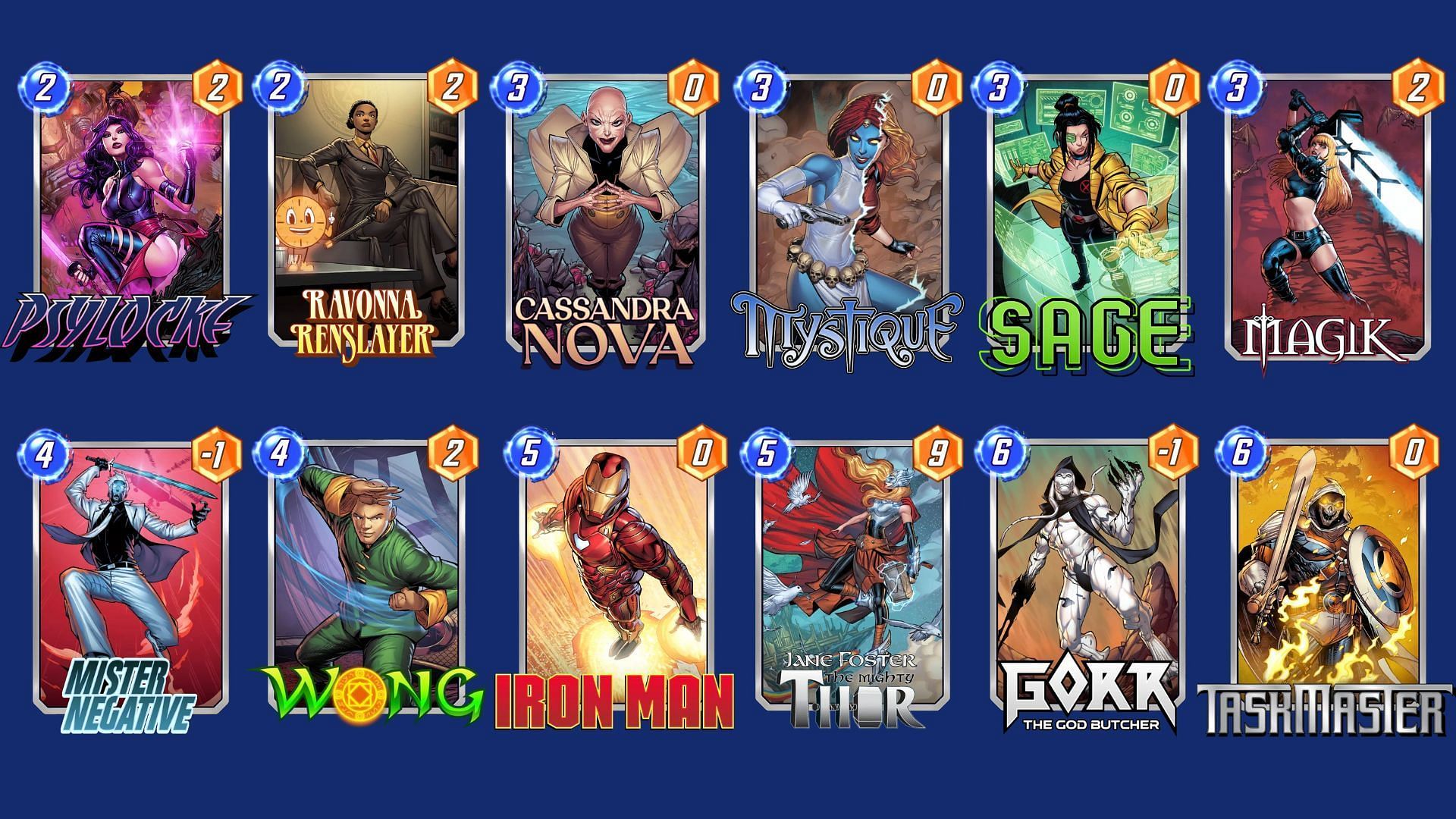 This deck centers around Mister Negative's ability to flip card costs, enabling powerful plays with low-cost cards like Iron Man and Mystique. Wong enhances On Reveal effects, allowing for massive scaling of power through cards like Cassandra Nova.
