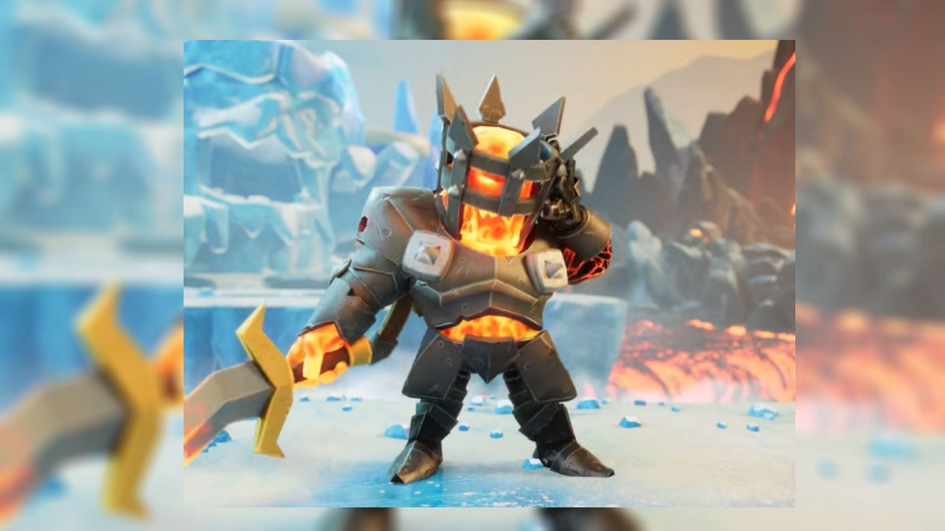 While walking in the home village, the Fire King lets his sword drag along the ground to leave a blazing trail. When tapped his fire intensifies and he raises his sword and yells.