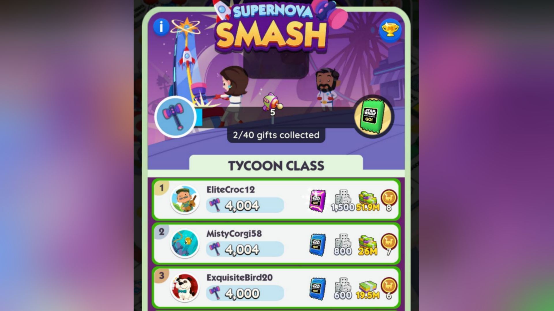 Listed below are all rewards in the re-introduced Monopoly Go Supernova Smash event:
