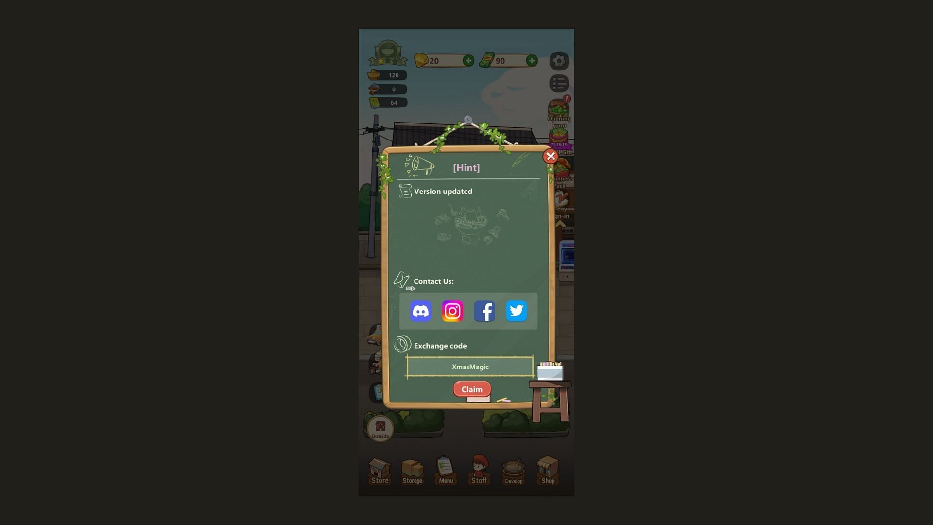 Code announcements are usually made through My Hotpot Story's Facebook, Twitter, and Instagram pages. New codes are also released within the game through banners and notifications.