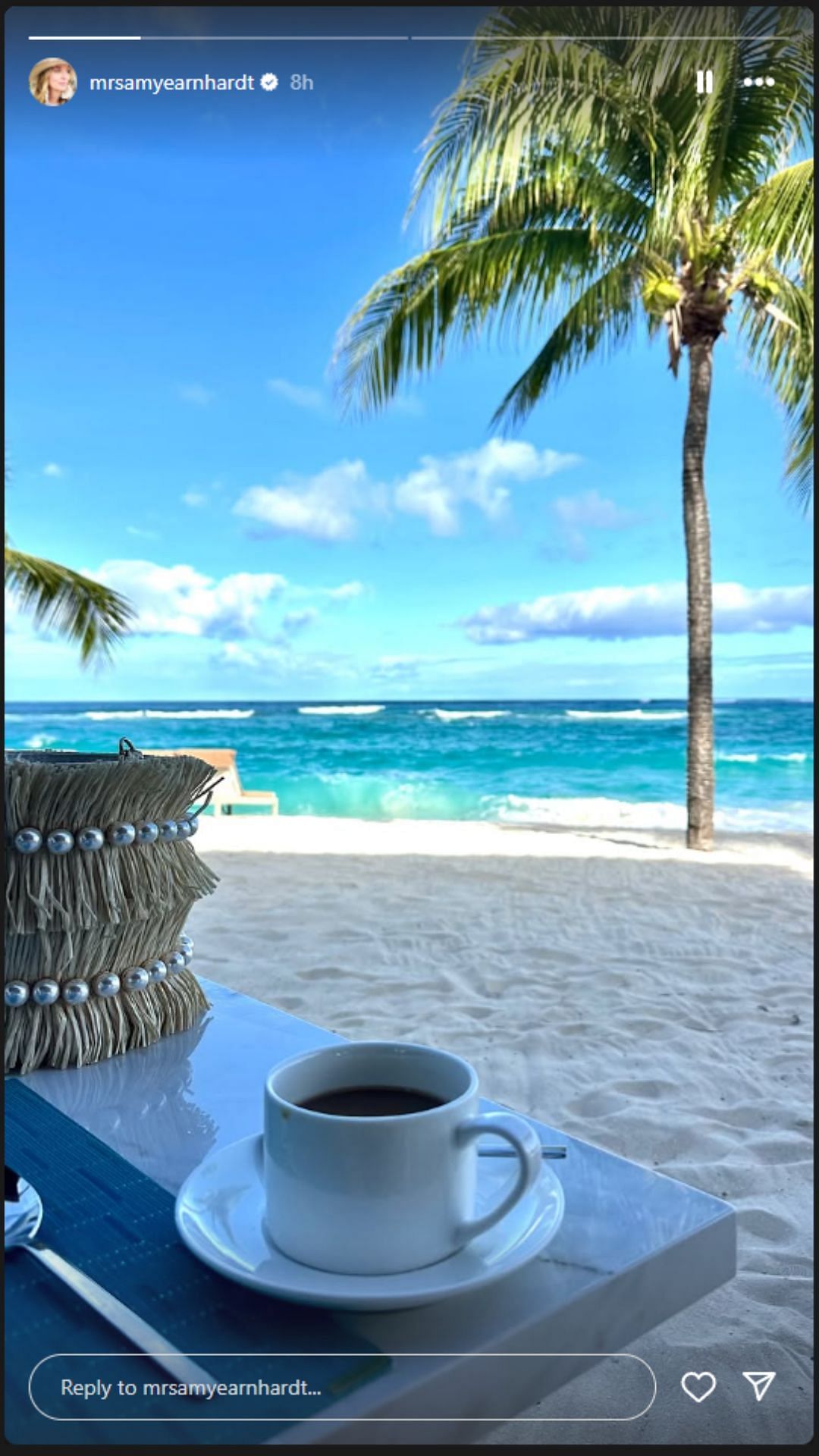 This post follows an earlier Instagram story where she and Dale Earnhardt Jr. are enjoying by the beach.