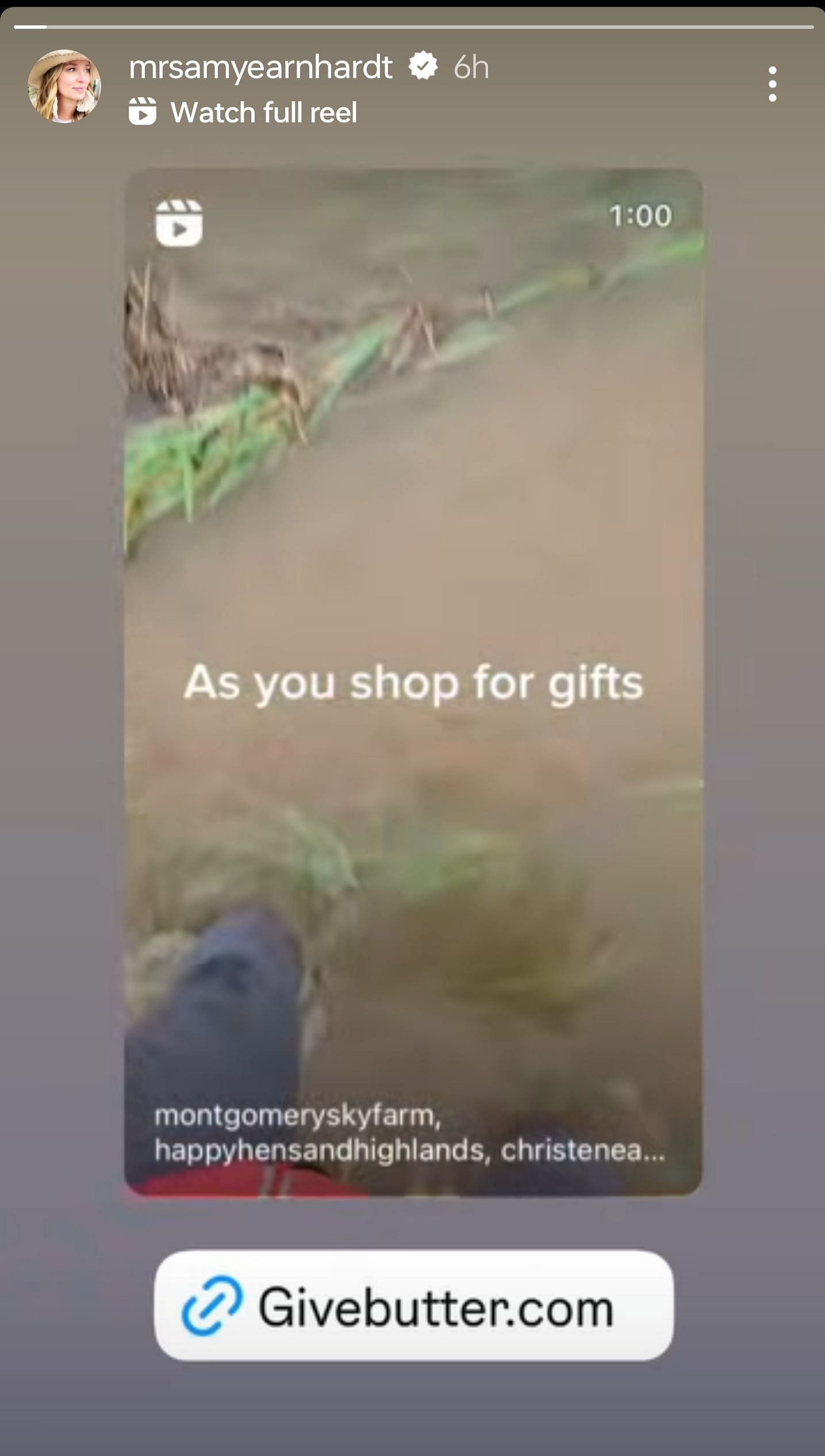Amy shared the video on her Instagram story and inserted a givebutter.com link. Here's a screenshot: