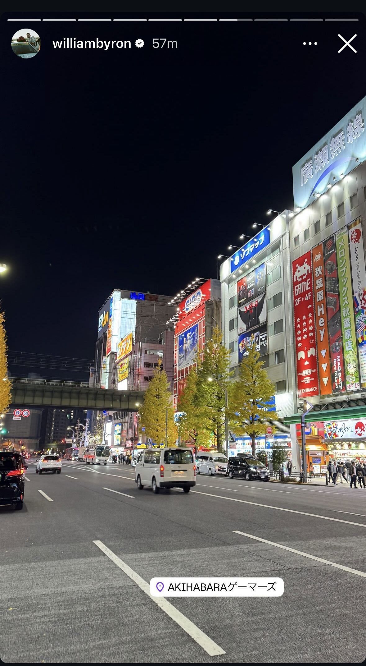 Hendrick Motorsports' William Byron posted glimpses from his getaway to Japan during the off-season on Instagram. The #24 driver landed in Japan earlier this week and has been posting pictures on his stories from his time in East Asia.