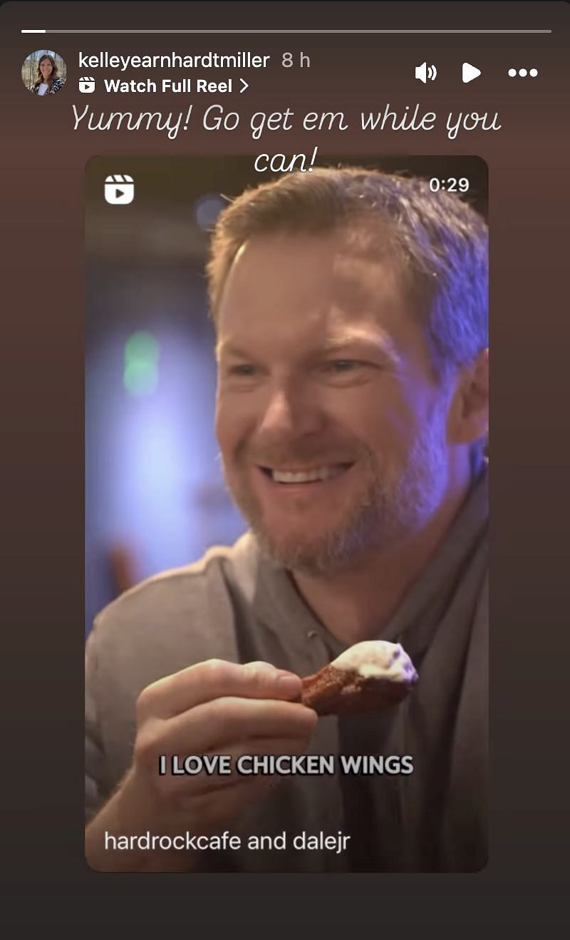 In an Instagram story, Kelley shared a clip of Dale Jr. unveiling the menu, adding the caption: