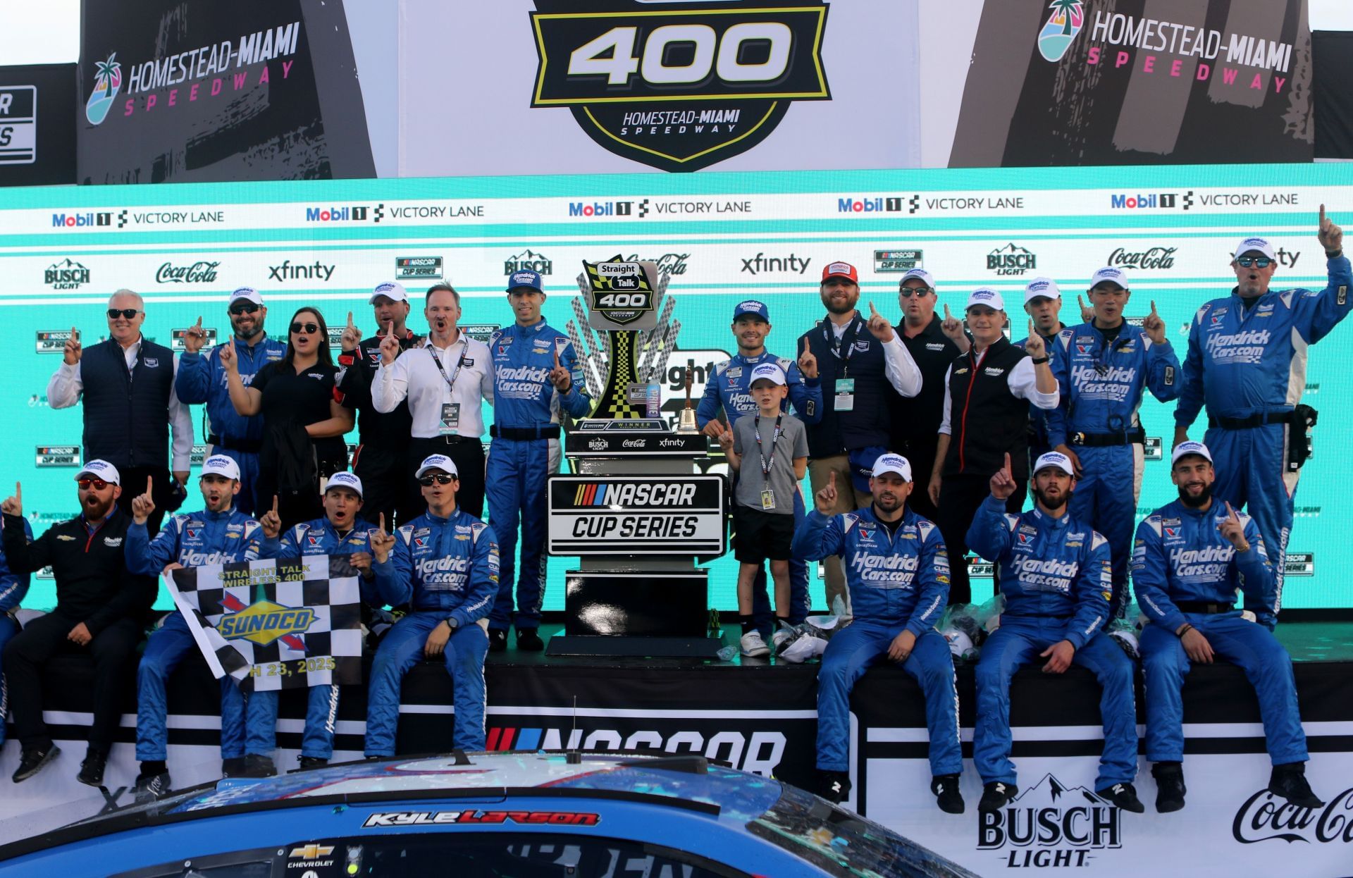 Hendrick Motorsports star Kyle Larson shines once again at the Homestead-Miami weekend, triumphing at the Straight Talk Wireless 400 race. The No. 5 Chevrolet driver clinched his maiden NASCAR Cup Series win of the season on Sunday (March 23).
