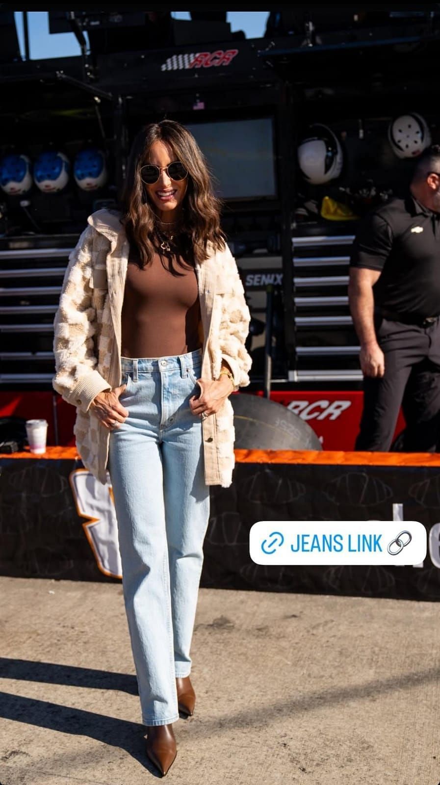 "I think the fit is so good again; I don't want something super baggy, but I know, I know we can't wear skinny jeans anymore. Yet they're gonna come back. But here they are. So this is the ultra high-rise," stated Kyle Busch's wife.