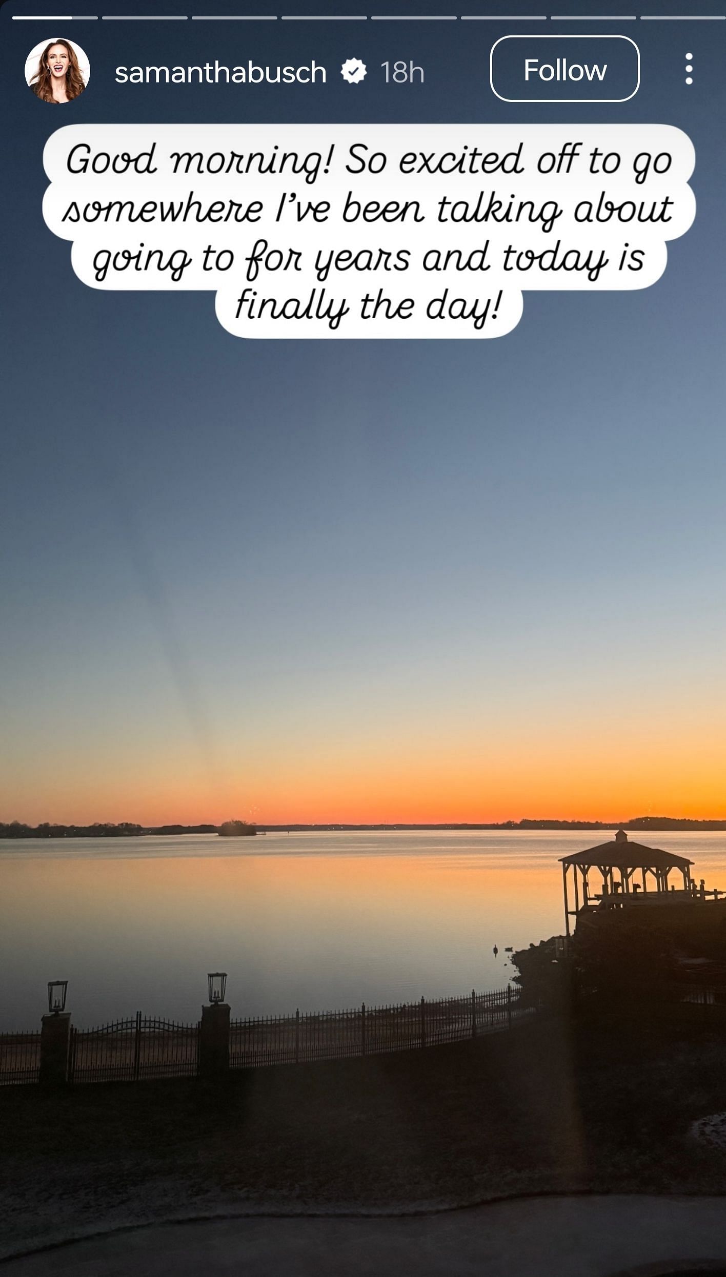 "Good morning. So excited off to go somewhere I've been talking about going to for years, and today is finally the day."