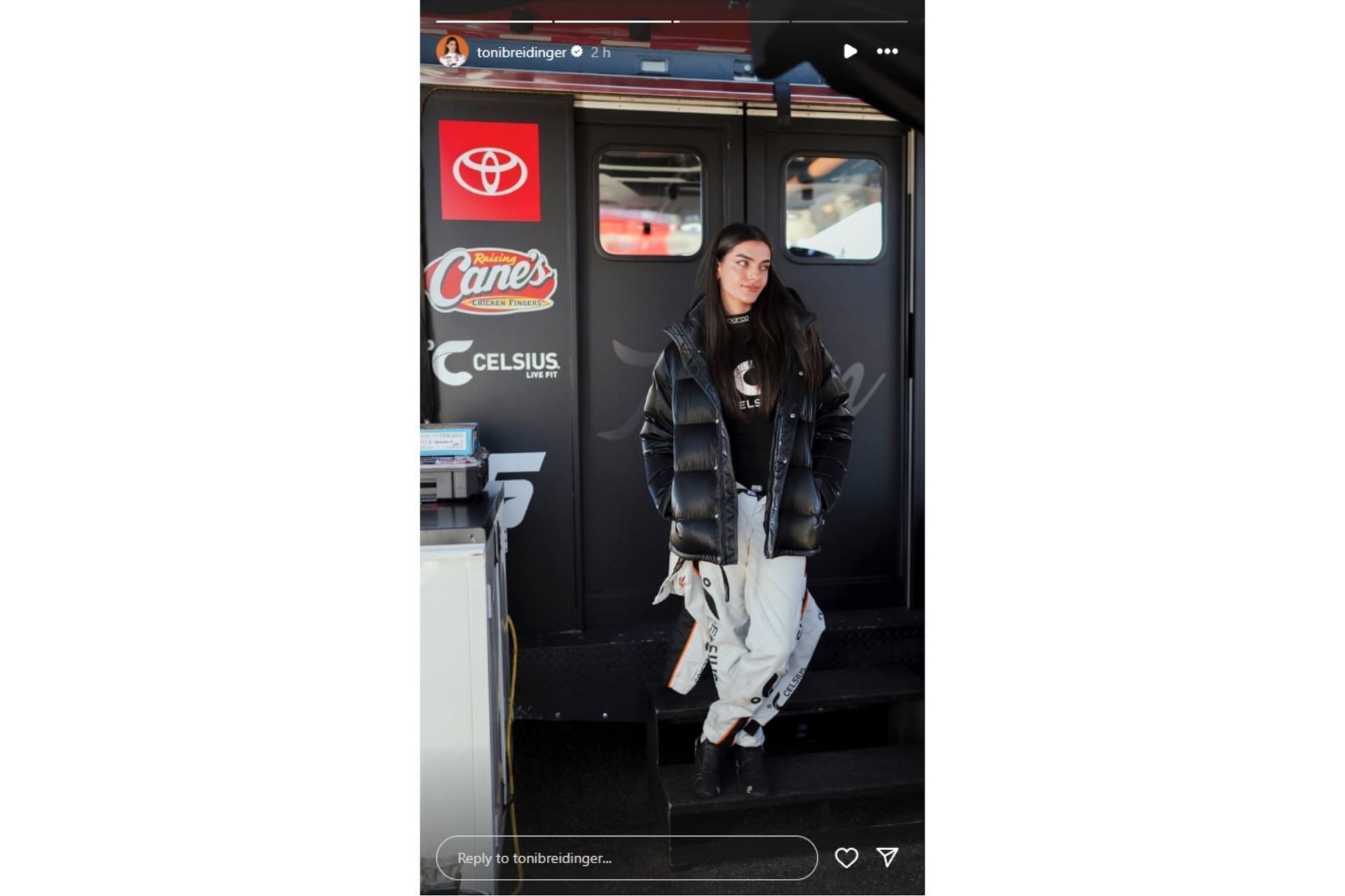 Toni Breidinger hit the track with Tricon Garage and shared a picture of her in a stunning black puffer jacket in the garage, drawing a sharp contrast from her white racing suit. Breidinger is set to make her full-time Truck Series debut with Tricon this season.