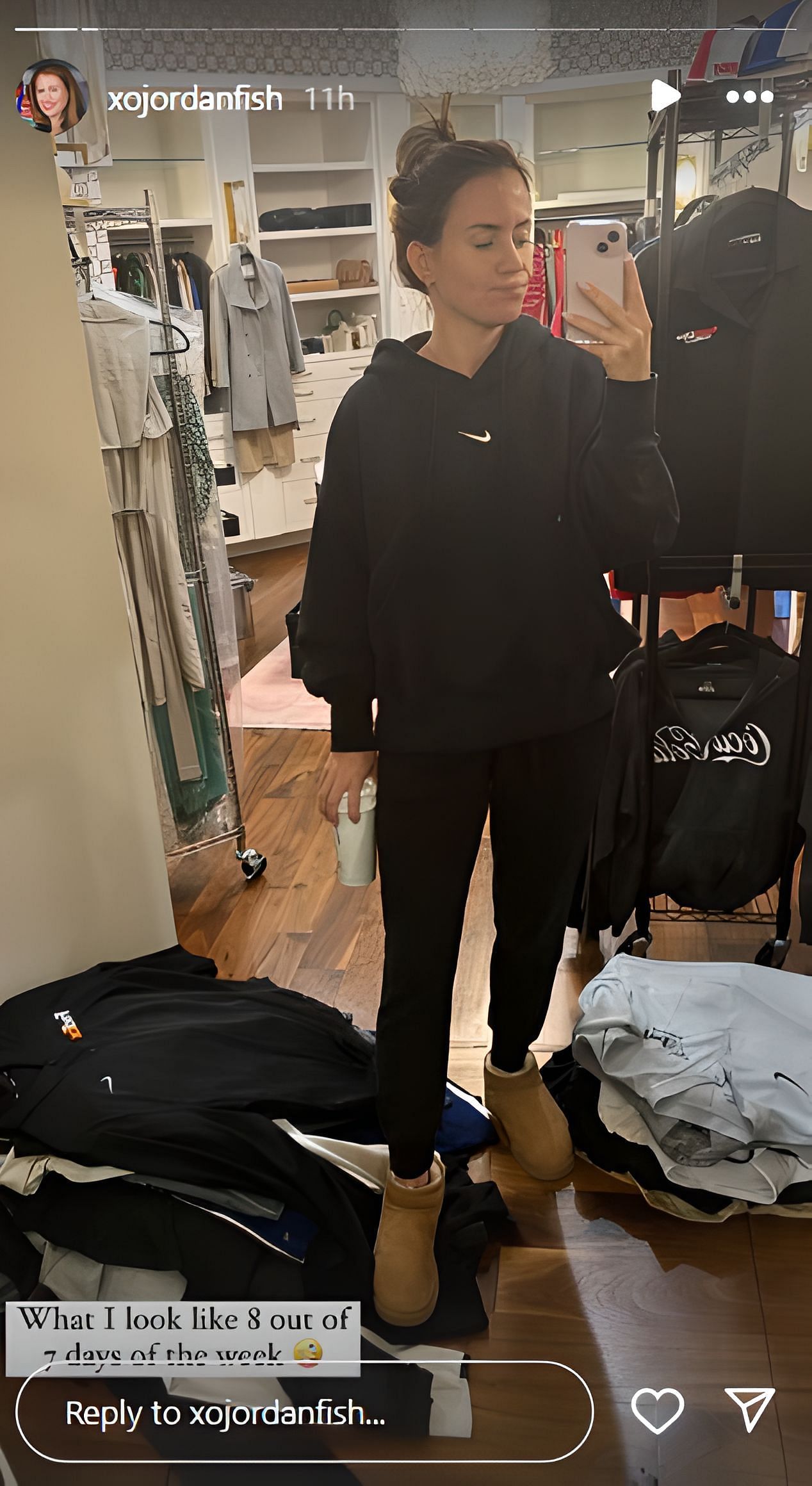 She then shared her all-black outfit with beige boots and captioned the story: