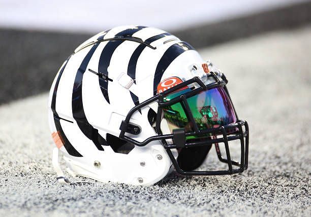 The simple orange helmet was made the primary emblem. It had black Bengals lettering trimmed in white on it in uppercase.
