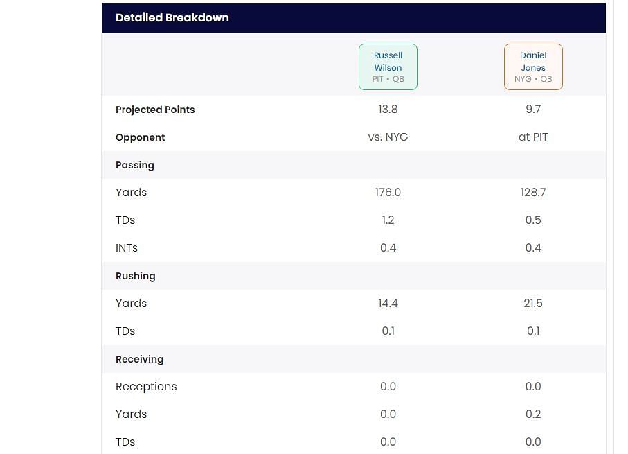 Sportskeeda's Who Should I Start tool predicts that Wilson will score more than four additional fantasy points this week. Despite Jones having better rushing projections, it's not enough to overcome his far inferior passing expectations. Wilson is also much more likely to score a touchdwon, significantly helping his weekly fantasy outlook.