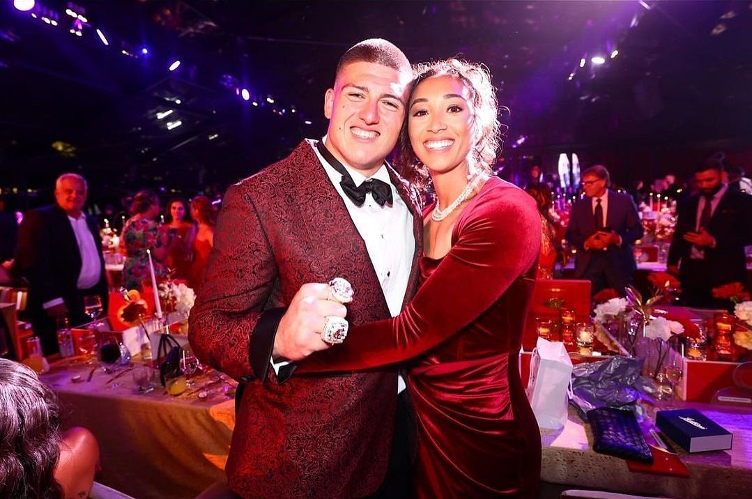 George Karlaftis’ girlfriend is Kaia Harris, according to the Kansas City Star, as of February 2025. Harris is from West Lafayette, Indiana, and is an Olympic track and field athlete in discus throw. The couple went to Purdue University together after meeting at West Lafayette Junior-Senior High School. In June 2021, they formally announced their relationship on Facebook, and since then have been frequently spotted together.